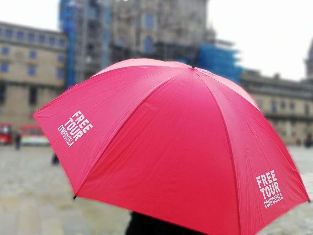 El punto de encuentro es la Plaza del Obradoiro en frente al Hostal Parador de los Reyes Católicos. Nuestro distintivo es un paraguas ROJO.
