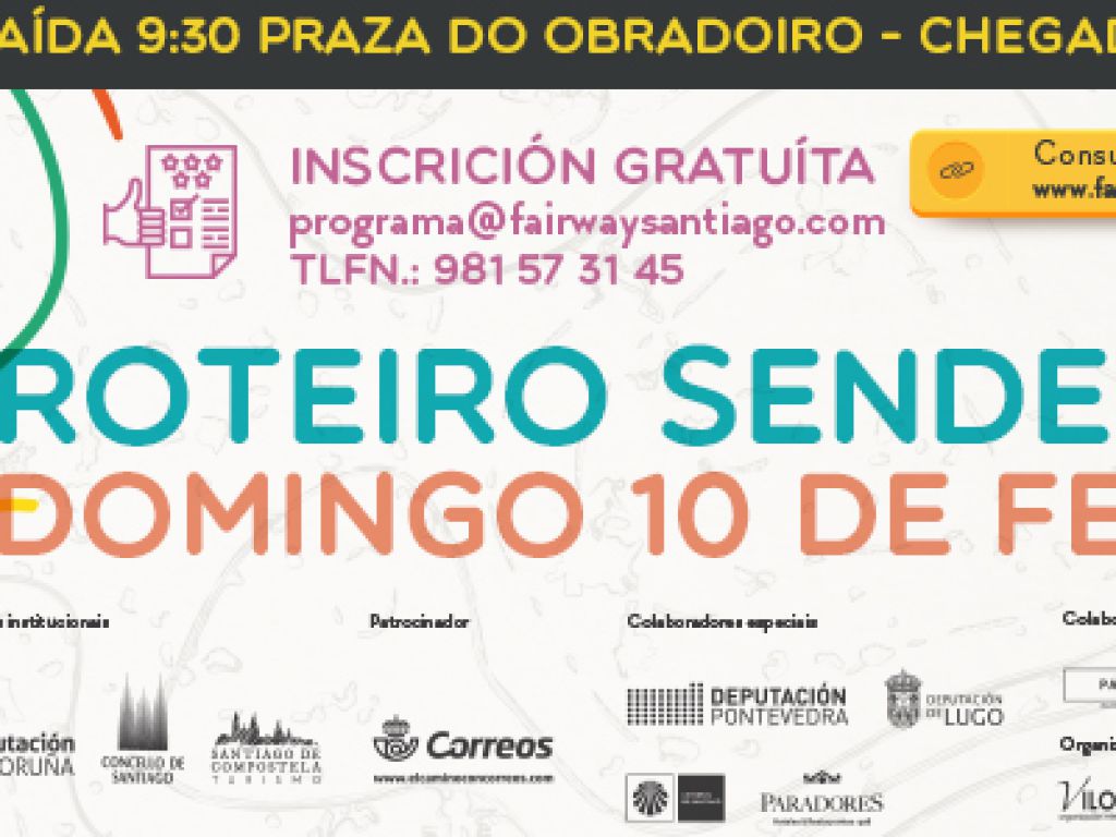 Con motivo de la celebración de la tercera edición de Fairway, Forum do Camiño de Santiago (10, 11 y 12 de febrero en el Palacio de Congresos de Santiago), el domingo día 10 llevaremos a cabo una ruta de senderismo, denominada ICamiño, que unirá los cuatro caminos que llegan a Compostela (Francés, Inglés, Portugués y Vía de la Plata) y el que sale (Fisterra-Muxía), dándole la oportunidad a vecinos y visitantes de salir de los circuitos turísticos habituales. Los caminantes estarán acompañados por guías oficiales y, además de otros regalos, recibirán una credencial creada ex profeso para la ocasión: la Santiaguesa.