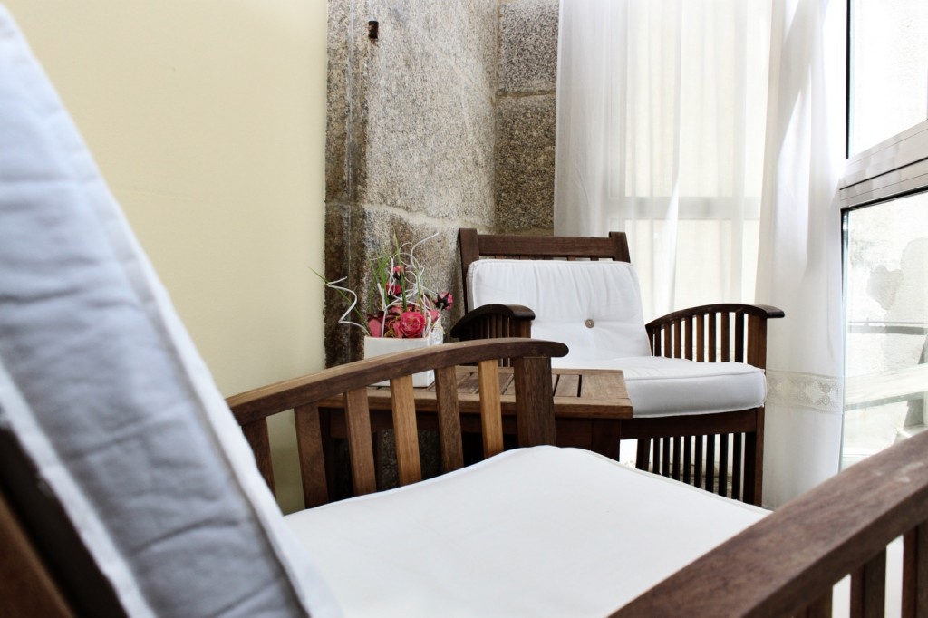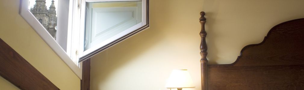 Situada a setenta pasos del kilómetro cero donde convergen todos los caminos jacobeos, la pensión goza de espléndidas vistas sobre las torres de la Catedral, los tejados, las galerías y las altivas chimeneas de los palacios, en un entorno que invita al paseo recogido y romántico por el bosque granítico de losas y soportales, que otrora recorrieron gallegos ilustres como Rosalía de Castro o Valle Inclán, y donde resuena, confundido con el grave sonido de la campana de la torre Berenguela, el eco de los pasos de los innumerables peregrinos que, movidos por la fe, han acudido a Santiago de Compostela a lo largo de los siglos.