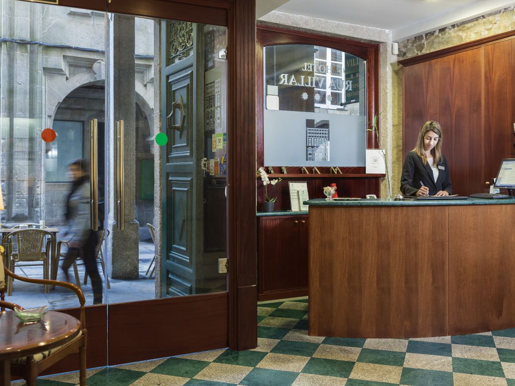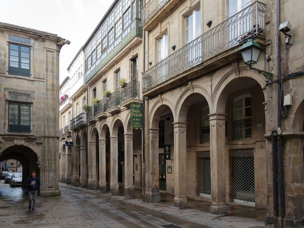 Hotel con encanto de trato familiar, enclavado en pleno corazón de la zona monumental de Santiago, en la Rúa do Vilar, calle que conduce a la única puerta románica que se conserva en la Catedral. Ocupa una casa del siglo XVIII que ha sido totalmente rehabilitada en el año 2003, utilizando para ello materiales nobles como el mármol o la madera. Destaca la remodelación del lucernario que ilumina el espacio central del hotel.