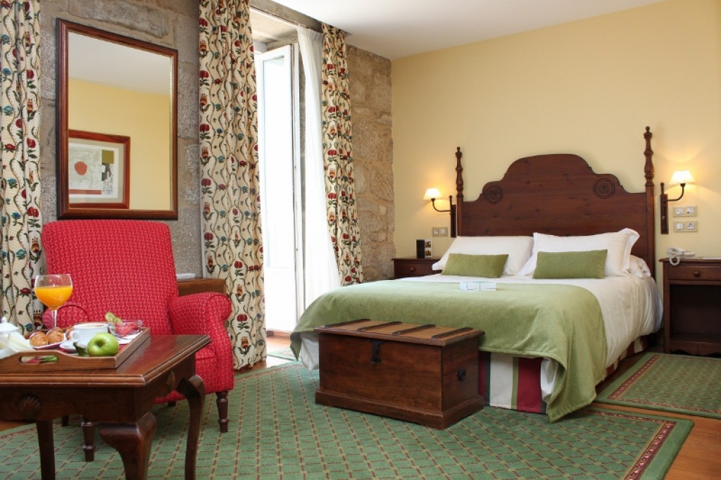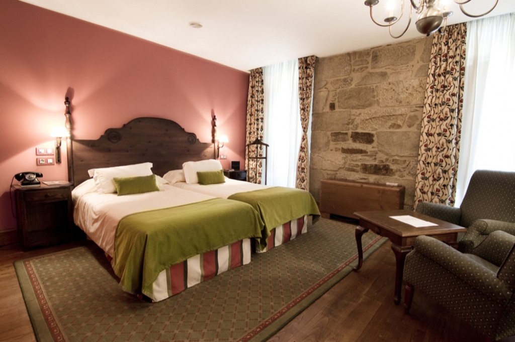 o Habitaciónes dobles superiores ubicadas en el edificio noble del siglo XVIII, rehabilitado recientemente para hotel, cuyas fachadas están orientadas hacia el pintoresco mercado de la ciudad vieja y el grandioso parque de Belvís y jardín privado del hotel. Destacan por su tamaño, elegancia, singularidad y sus cuidados detalles, estando decoradas con muebles de tipo anticuario, y manteniendo a la vista la estructura del caserón original en piedra y madera, dotan a esta habitación de un especial encanto y romanticismo.
