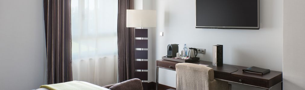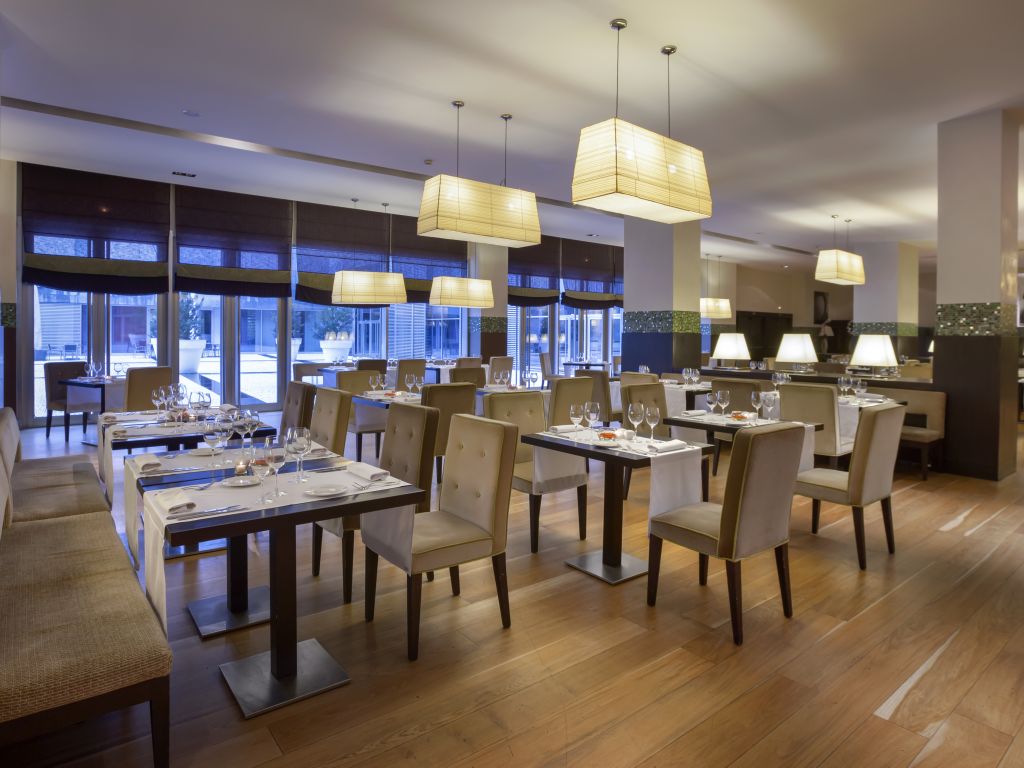 Acceso autobuses, Acceso automóviles, Acceso minusválidos, Acceso motos, Antena parabólica, Ascensor, Bar-Cafetería, Caja fuerte individual, Garaje, Gimnasio, Habitación con salón suites, Jardín/Terraza, Minibar, Pago con tarjeta de crédito, Parking, Piscina, Piscina climatizada, Restaurante, Room service 24 h, Salón de convenciones, Sauna, Secador de pelo en habitaciones, Televisión en las habitaciones, Teléfono en habitaciones