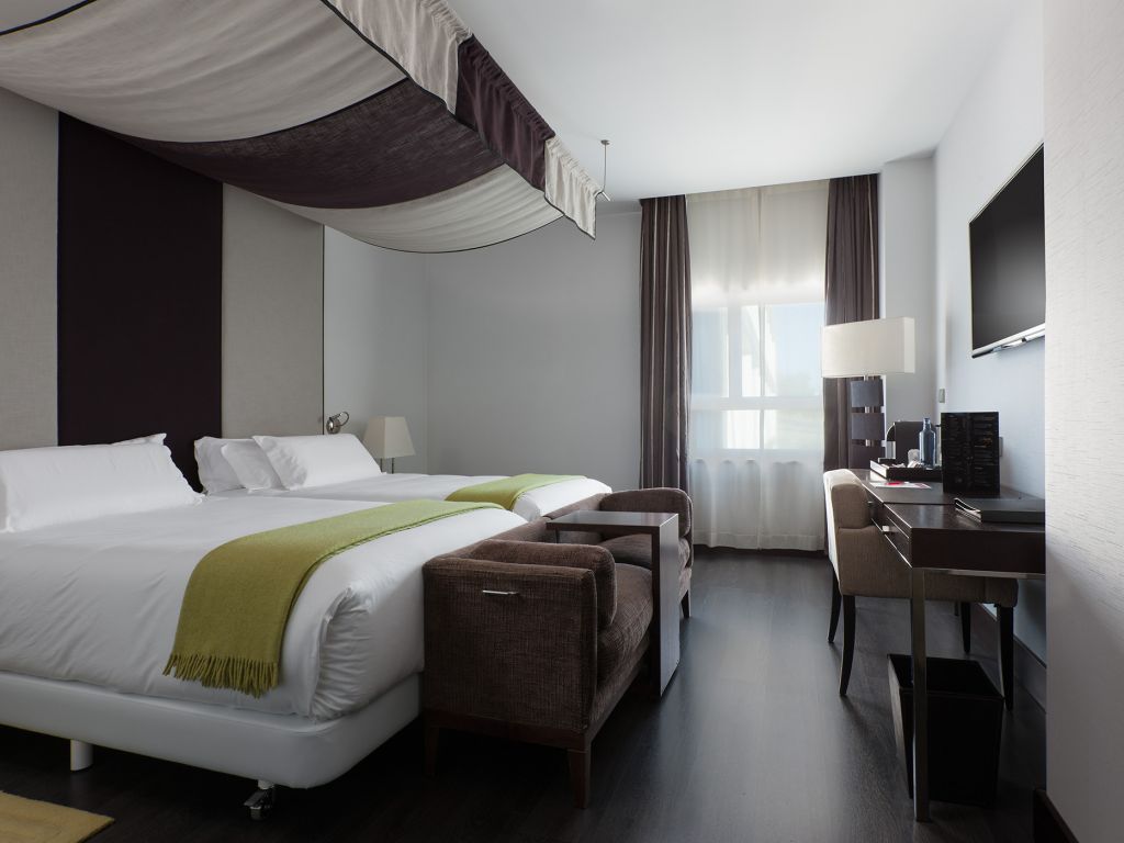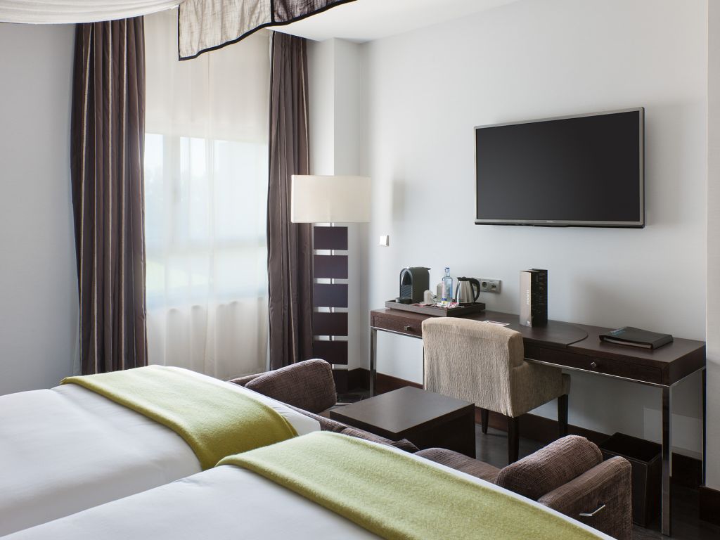Todas las habitaciones del NH Collection Santiago están insonorizadas y tienen una cama con dosel y vistas al jardín. Sus modernas habitaciones cuentan con TV de pantalla de plasma y bonitos muebles de madera.