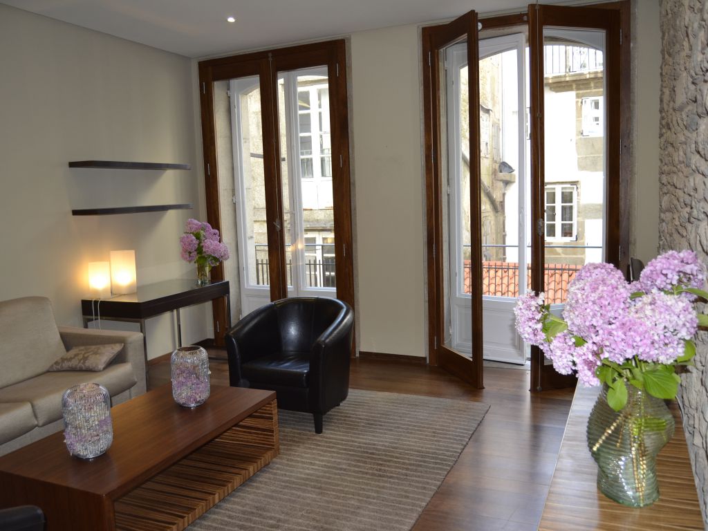 Situado en la zona más céntrica y comercial del casco histórico de Santiago de Compostela, próximo a Praza do Toural y Porta Faxeira, a pocos minutos de la Catedral (aprox. 300 mts) y a unos 30 mts de la Oficina de Turismo, Próximo a Praza de Galicia, donde existe un parking público 24 hs, paradas de taxis y parada de Bus Aeropuerto.