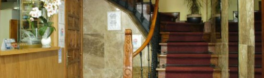 La pensión ocupa una casa de más de 100 años y está ubicada en una calle peatonal de la zona vieja, a poca distancia de la Catedral y a 30 m de la Plaza de Galicia.