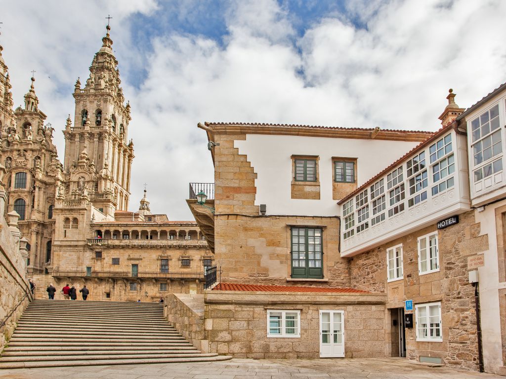 Hotel Plaza Obradoiro is located in a unique and privileged enclave in Santiago de Compostela, just 25 metres from the Cathedral.Plaza Obradoiro is a charming 2-star hotel, as elegant as the building that houses it: a traditional three-storey Galician house attached to the Praza do Obradoiro.