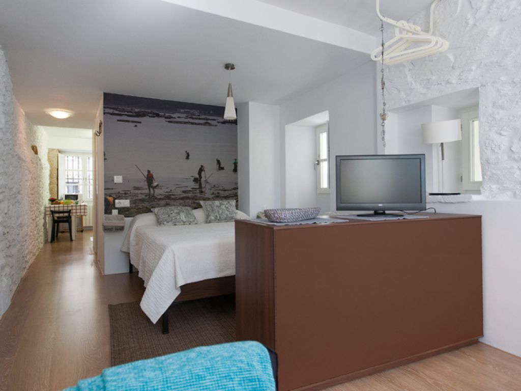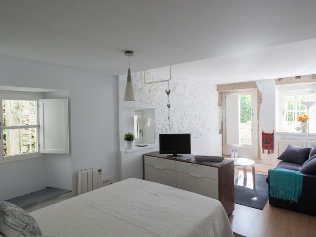 Los apartamentos se caracterizan por espacios luminosos que se abren tanto a la tranquila rúa como a la amplia zona de antiguas huertas. La decoración es actual y sencilla, respetando el legado de la piedra original.