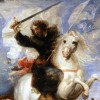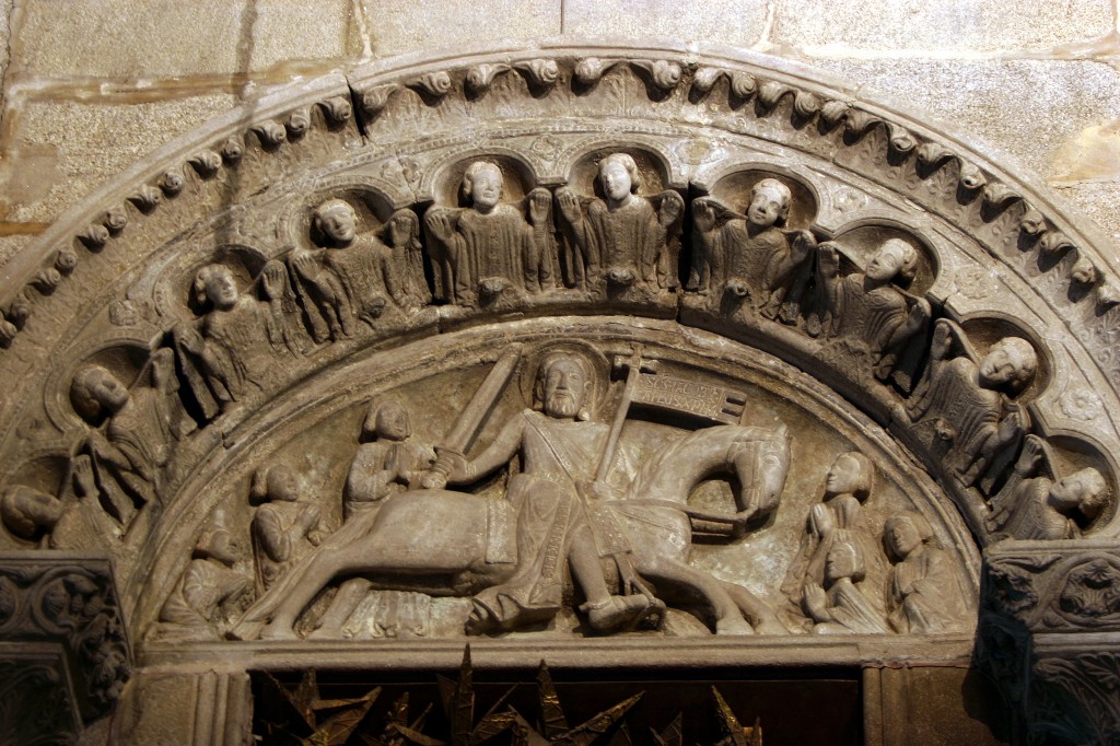 La figura de Santiago Matamoros, el apóstol guerrero, se convirtió en verdadero estandarte de la Reconquista desde que el 23 de mayo del 844 se ‘apareció’ ante el rey Ramiro I y otros monarcas cristianos montando un caballo blanco y blandiendo una espada para ayudarlos a vencer a las tropas de Abderramán II en la Batalla de Clavijo.