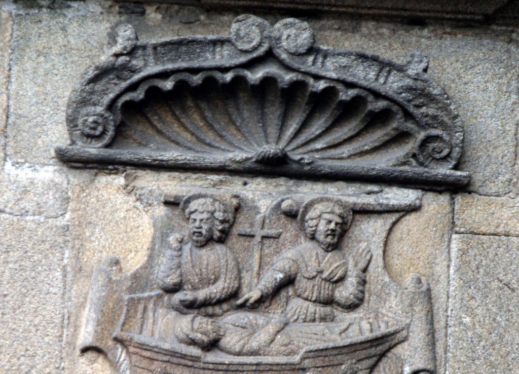 Atracaron en el puerto de Iria Flavia, en los confines de la tierra entonces conocida, donde quedó la barca amarrada a un poste de piedra, lo que explica el origen etimológico del nombre de la villa de Padrón (pedrón). El territorio estaba dominado por una reina pagana, la Raíña Lupa. Los discípulos le pidieron un carro y una yunta de bueyes para transportar el cuerpo de Santiago. Ella, taimadamente, los envió a un monte próximo en el que pacían rebaños de toros bravos. Pero en lugar de embestirlos, los toros se acercaron dócilmente a los discípulos y se dejaron poner el yugo. Se dice que la Raíña Lupa, impresionada por este y otros prodigios, se convirtió al cristianismo.