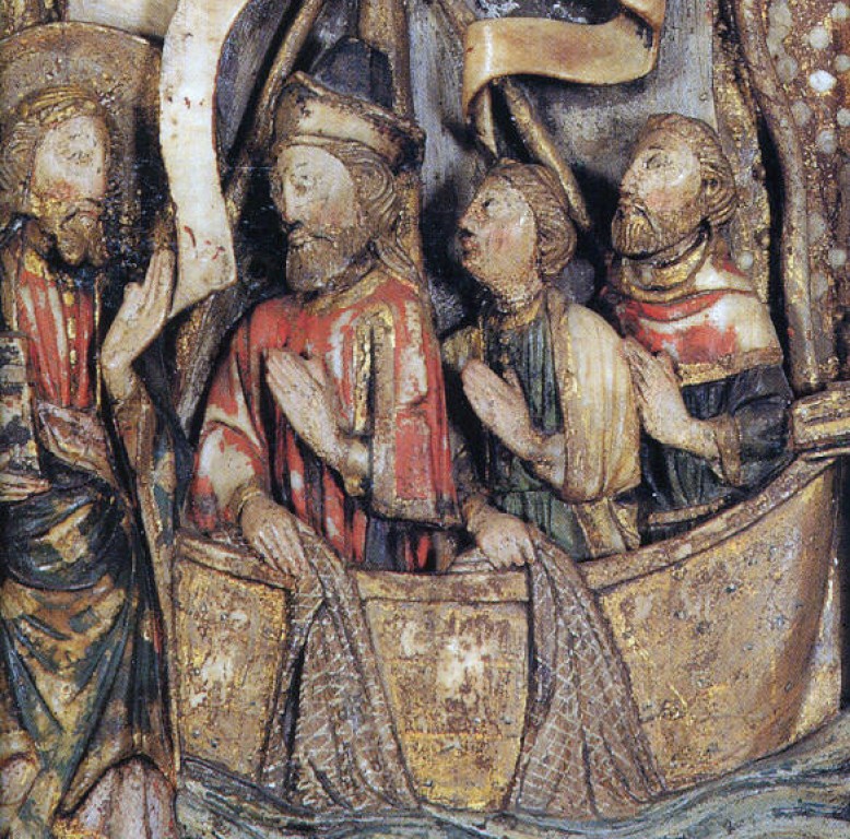 Juan, Santiago, Andrés y Pedro se dedicaban a su trabajo cotidiano como pescadores cuando Jesús llegó a la orilla del lago de Genesaret y los llamó para que se unieran a él como ‘pescadores de hombres’. A los dos primeros Jesús los apodó Boanerges, ‘hijos del trueno’, por su fuerte temperamento.