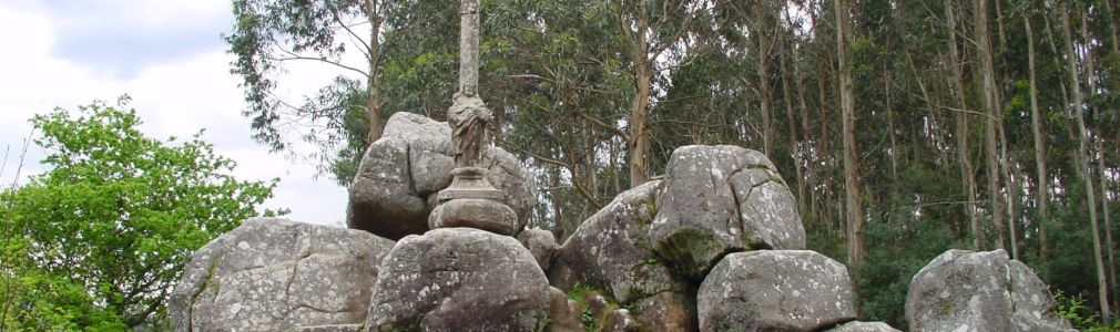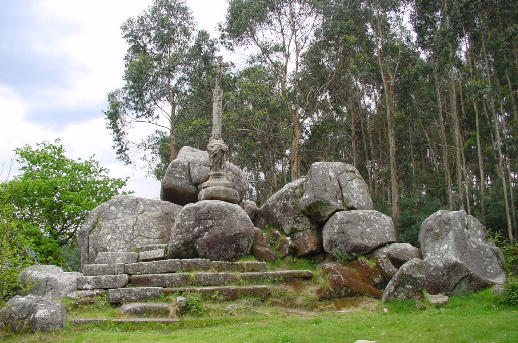En el centro del conjunto de los 10 grandes batólitos, destaca la figura de Santiago sobre una peana. Delante hay unas cruces grabadas y una inscripción que reza, según algunos, "Limosna para Santiago Maior Apóstolo" y, según otros, "Limosna para Jesús y María". En todo caso, al lado de esta debió de existir un peto. En la roca superior puede observarse una cruz pétrea que ya existía en el siglo XVII.