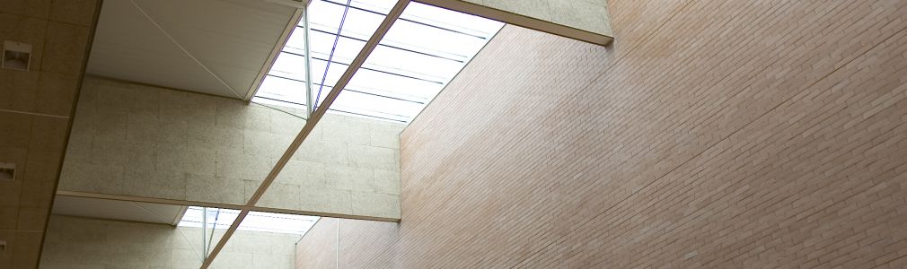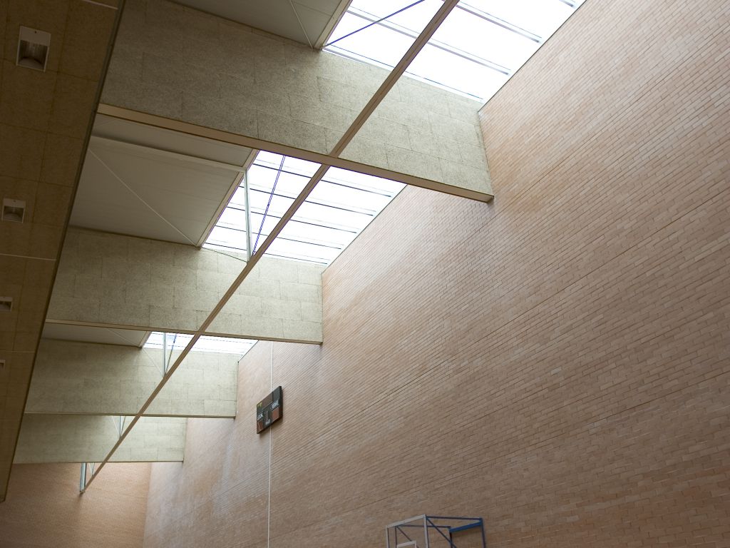 El recorrido desde la avenida Xoán XXIII hasta el interior del pabellón polideportivo, forma parte necesaria de la visita al edificio. A través de un recorrido intencionalmente ajardinado, se nos obligará a rodear el pequeño edificio viendo su fachada posterior ciega y apenas sobresaliendo del terreno, girar por su lateral, que resulta un claro esquema de su sección, y recorrer el espacio bajo el gran voladizo para penetrar en el edificio a través de su piel de cristal. Desde la parte superior de las gradas se ofrece todo su espacio iluminado cenitalmente por un lucernario que arroja luz rasante sobre el muro del fondo. Bajo estas gradas se dispone todo el menudo programa de vestuarios y almacenes, ejemplarmente resuelto.