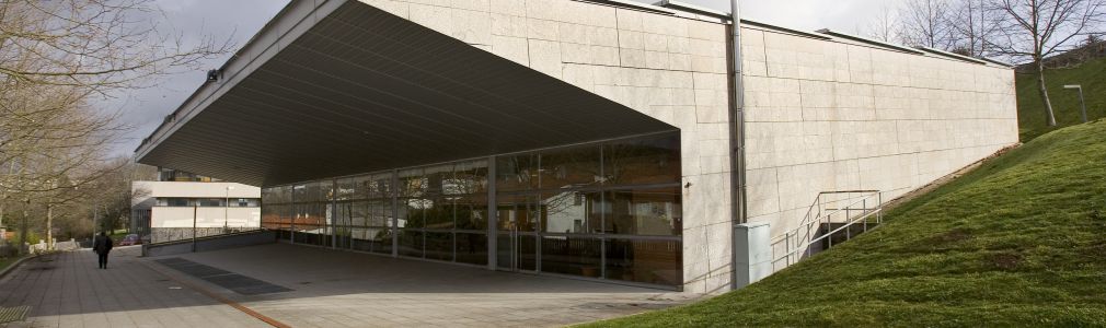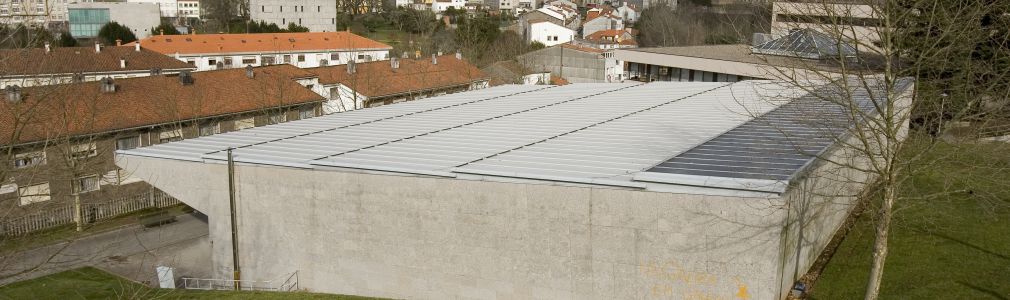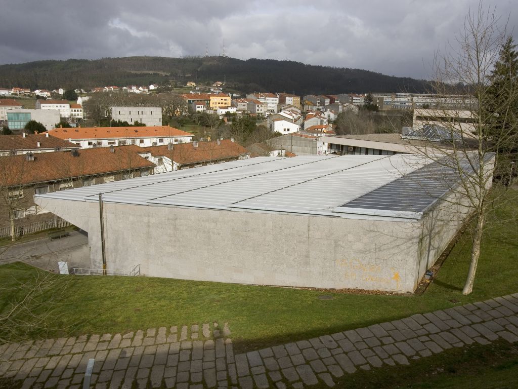 El pequeño pabellón polideportivo construido en la ladera que desciende desde la avenida de Xoán XXIII fue concebido como parte de la reordenación de esta importante vía de acceso al casco histórico. Los autores de este conjunto urbano, los arquitectos catalanes Albert Viaplana y Helio Piñón, fueron, también, los encargados del diseño del pabellón. Este equipamiento deportivo se dispuso en una fuerte pendiente ajardinada con la intención de que su volumen pasase desapercibido para los viandantes de la avenida mientras contemplan el paisaje del Monte Pedroso, verdadero protagonista de la panorámica. Por esta razón el pabellón se entierra parcialmente en el terreno con una cubierta inclinada en un único plano que acompaña a la ladera en su descenso. Esta cubierta se prolonga en un gran voladizo, que crea un espacio cubierto de acceso que, con su baja altura, resulta especialmente acogedor.