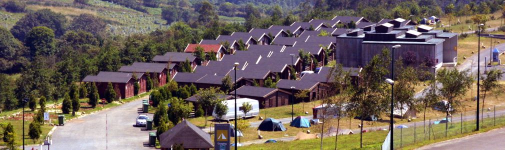 El auditorio señala su perímetro con una serie de pequeñas construcciones auxiliares, de piedra de aspecto rústico y acero oxidado, dispuestas en diferentes posiciones giradas para evitar el trazado de un cierre continuo, que, con el tamaño del recinto, no podría conciliarse con el carácter abierto y blando de la actuación. Algunas de las piezas deben señalarse por su singularidad, como la capilla del Centro de Peregrinación, íntima y poética, o los tres volúmenes de aseos y lavanderías del camping, con una presencia que sirve como elemento de referencia y orden, con sus grandes lucernarios quebrados coronando su volumen de hormigón ciego.
