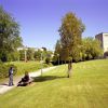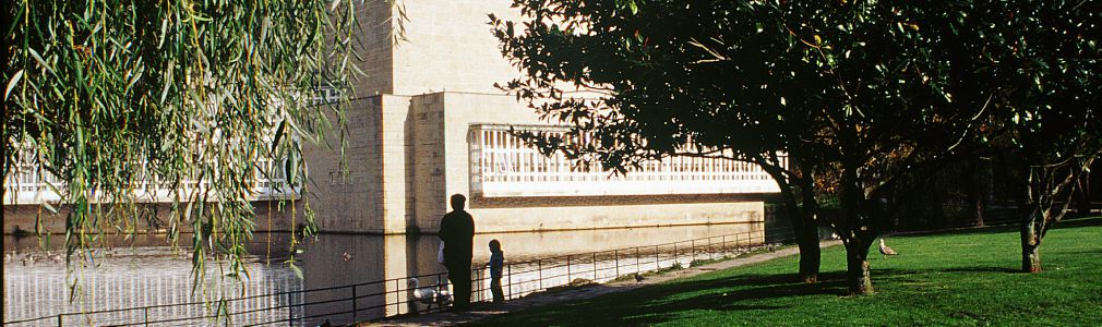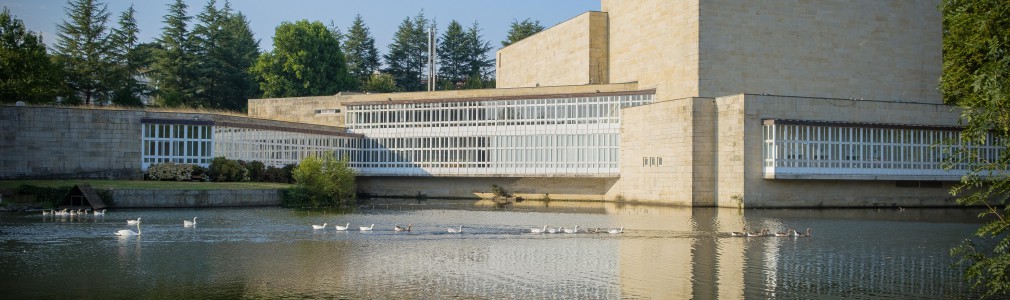 Un regato existente se utiliza para crear una gran lámina de agua, en la parte trasera del edificio, en el que se diseñó, vinculado a al equipamiento cultural, el Parque da Música en Compostela, al que se abren generosos paños de cristal, como la galería del restaurante, que queda volada sobre el agua, ofreciendo una hermosa vista de del parque y de la ciudad histórica, como telón de fondo.
