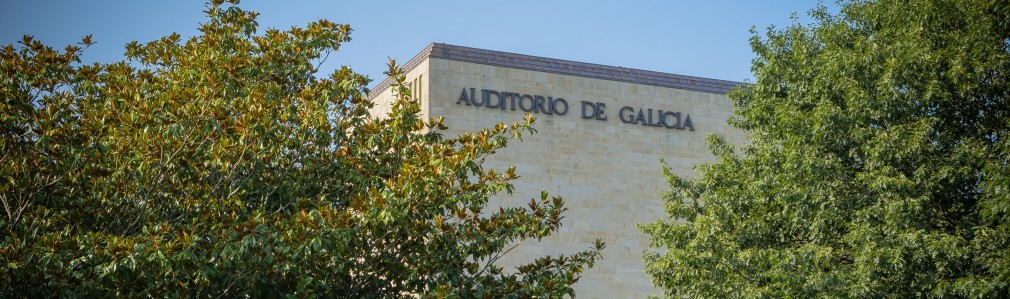 El edificio del Auditorio de Galicia muestra su vocación de construir ciudad al respetar la plaza existente para convertirla en un gran escenario urbano, porticado en dos de sus lados, antesala exterior del edificio. Tras el sobrio pórtico se eleva el volumen prismático del telar de la sala principal del auditorio. Este volumen ciego y totalmente forrado por un muro de sillería de granito ciego, es el referente visual del edificio, desde los diferentes lugares de Santiago, desde los que es visible.