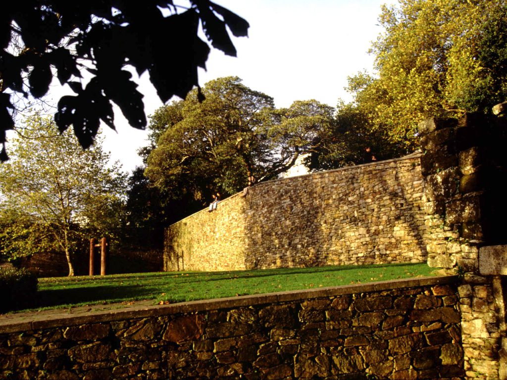 El parque de San Domingos de Bonaval completa el conjunto integrado por el convento y el nuevo Centro Galego de Arte Contemporánea. Álvaro Siza, autor del CGAC, e Isabel Aguirre han integrado los elementos existentes en el gran recinto conventual, que incluye un jardín medicinal, diferentes ruinas, una carballeira y el cementerio de Bonaval. Este gran espacio público dispone elementos nuevos, como los muros de piedra que definen las rampas de acceso desde el museo, de forma que parece que siempre han estado allí, y mantiene piezas existentes, como la traza del cementerio, que resultan absolutamente novedosas.