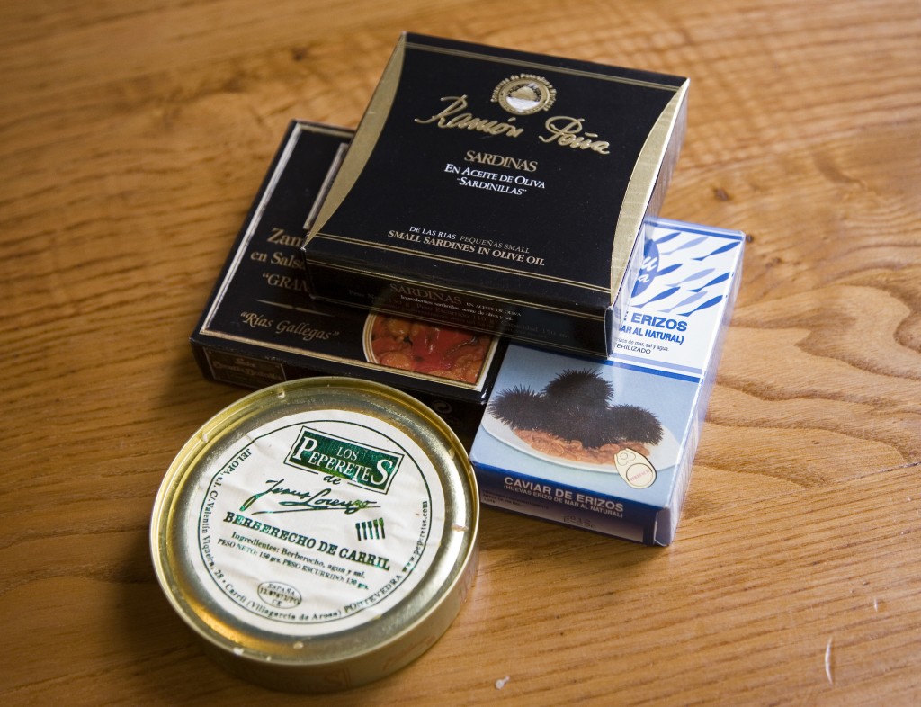 Dulces elaborados en los conventos de clausura, vinos gallegos, los únicos orujos europeos con denominación de origen, quesos, conservas del mar, algas, caviar de erizo, embutidos, castañas, tartas de Santiago, chocolate…