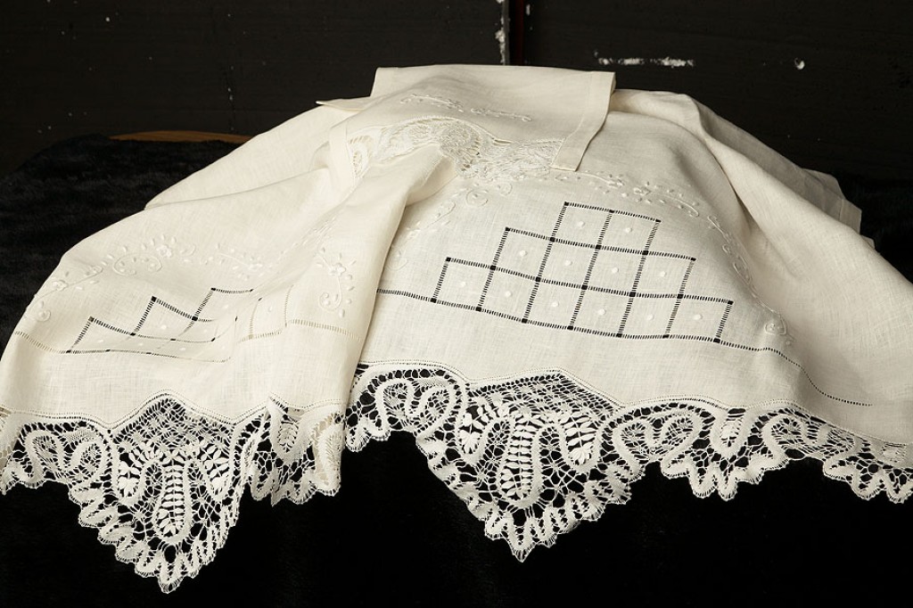 Los más delicados encajes de bolillos en ajuares, mantelerías, ropa de bebé…
