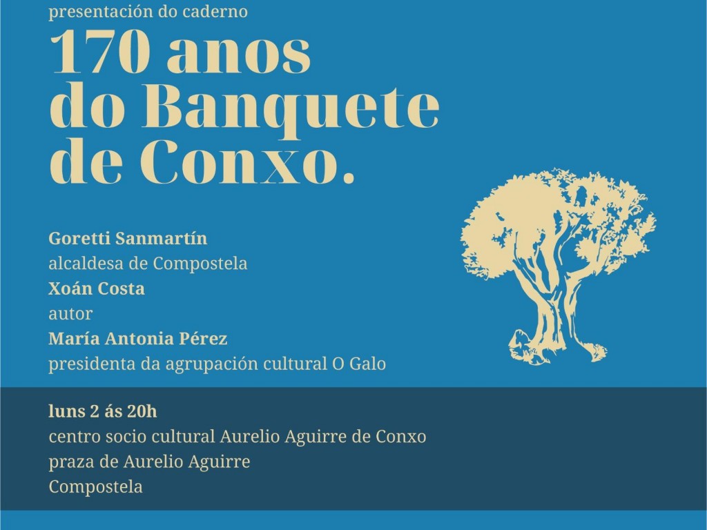 AC. O Galo organiza la presentación del cuaderno 170 Anos do Banquete de Conxo, un volumen en el que el filólogo Xoán Costa se adentra en la memoria colectiva de este acontecimiento histórico con una escritura precisa, culta y divulgativa, que ilumina la dimensión social, política y simbólica de aquella jornada fundacional del galleguismo.