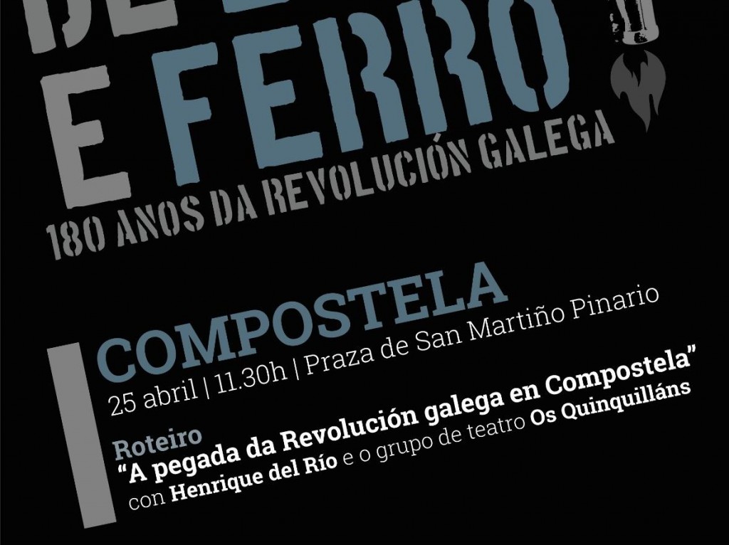 La ruta A Pegada da Revolución Galega en Compostela, organizada por la Asociación Cultural O Galo, será guiada por Henrique del Río Otero y amenizada por la compañía de teatro Os Quinquilláns, integrada por Lucho Penabade y Tero Rodríguez, proponiendo un recorrido por la memoria histórica de la ciudad.