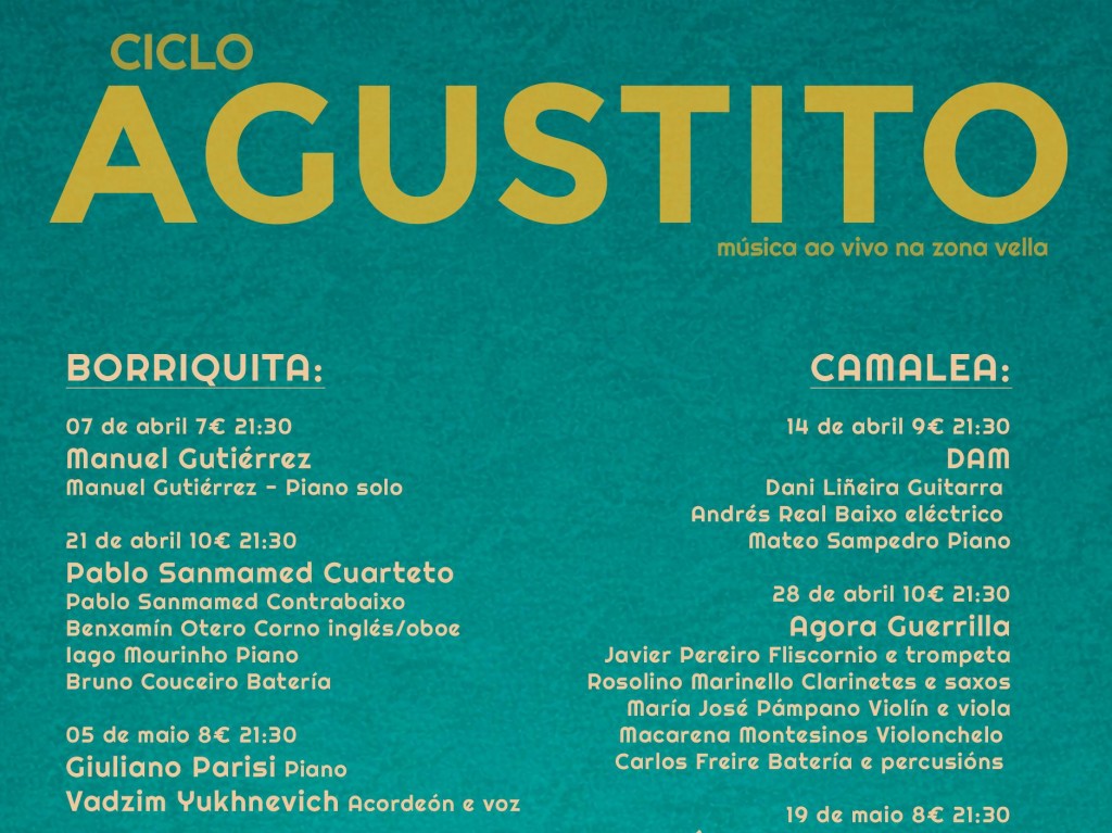 Ciclo Agustito es una propuesta de música en vivo que lleva el jazz y sus múltiples fusiones al corazón de la Zona Vieja de Santiago de Compostela, con una programación que se desarrolla entre abril y junio en dos espacios emblemáticos de la ciudad histórica: Camalea y Borriquita de Belem.