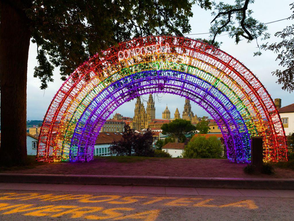 Además, en el Paseo de los Leones de la Alameda se instalará un Arco iris de grandes dimensiones para que tanto las personas residentes en Santiago como las personas que visitan la ciudad estos días podan tomarse una fotografía con los colores de la diversidad con la vista del Casco Histórico y de la Catedral en el fondo.