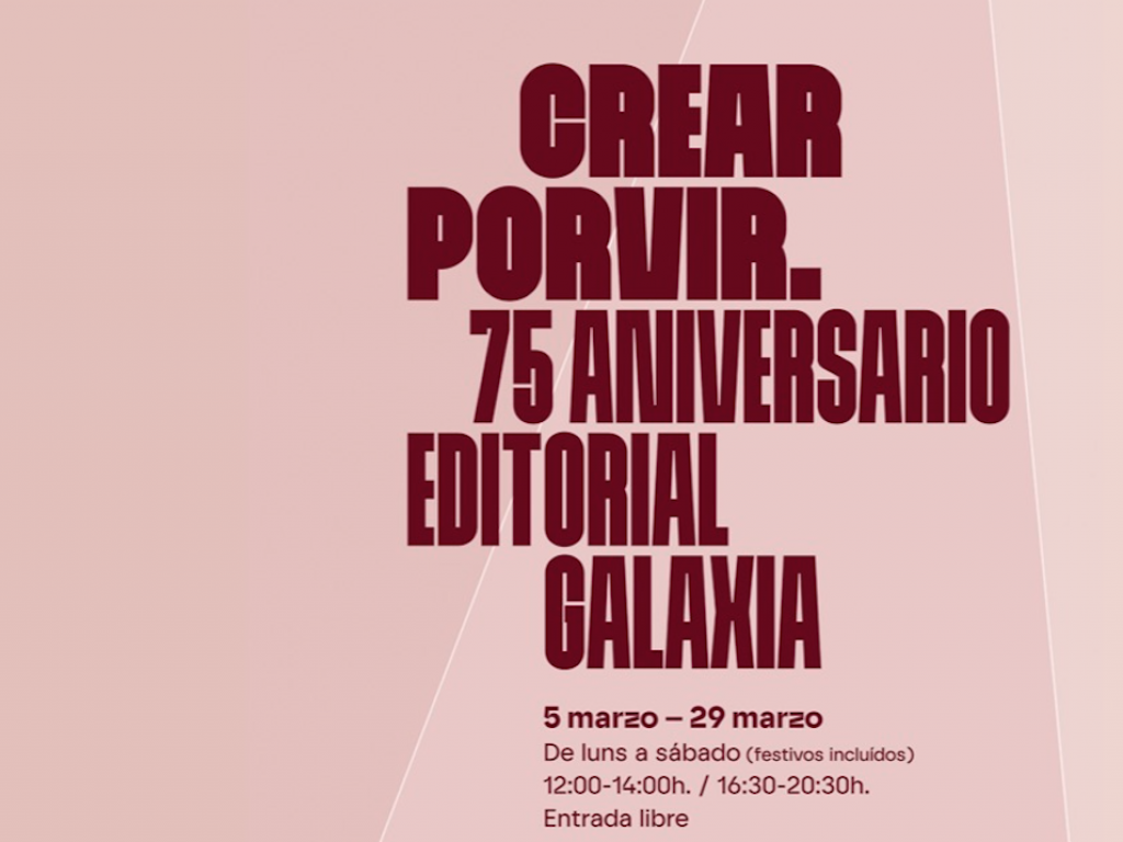 Con motivo de la celebración del 75 aniversario de Editorial Galaxia, se pone en marcha la exposición itinerante «Crear porvir. 75 aniversario de Editorial Galaxia», una muestra que recorre la historia de la editorial, desde su fundación en 1950 hasta la actualidad, destacando su papel clave en la evolución cultural de la Galicia contemporánea y su proyección exterior.