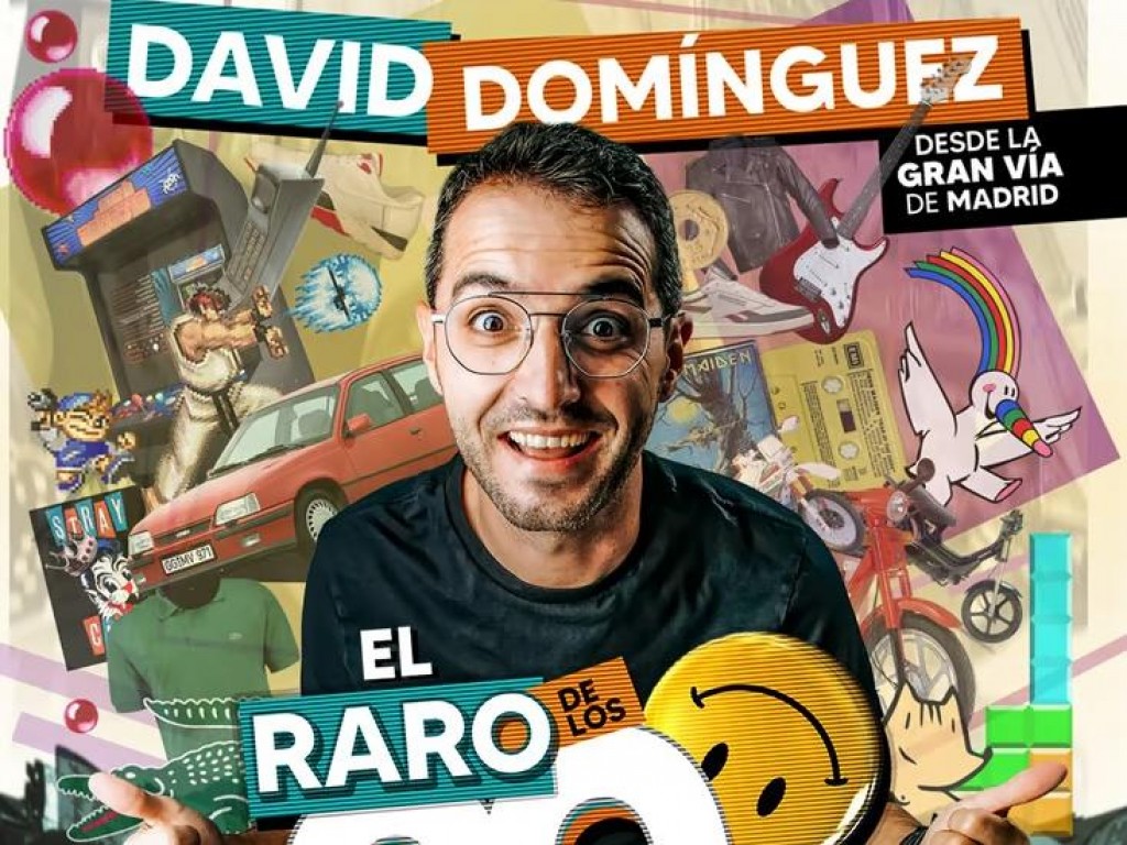 David Domínguez es un tío feliz (pero no feliz porque sea feliz, sino porque se entrena todos los días para serlo). «El RARO de los 90» es un espectáculo de humor en el que David Domínguez da un repaso en tono irónico, simpático y gamberro a sus vivencias en la maravillosa década de los 90.