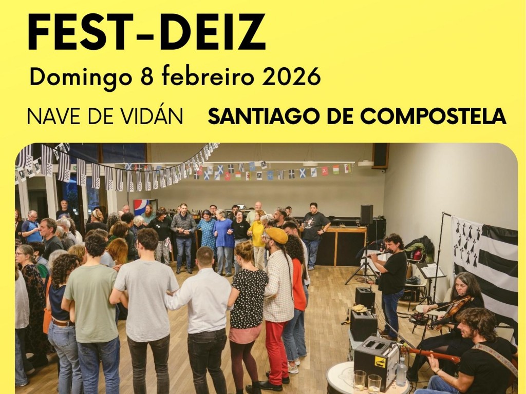 La asociación Breizh Galiza organiza un fest-deiz bretón el domingo 8 de febrero, de 17:00 a 20:30 h, en la Nave de Vidán. Se trata de un encuentro convivial con música en directo a cargo de Da VAB (Xacobe Varela, Xavier Agra y María Blanco) y del grupo ferrolano As Pías, en el que el público podrá bailar danzas tradicionales de Bretaña y Galicia en torno a la celebración de la chandeleur, vinculada a la elaboración y degustación de crêpes. A partir de las 19:00 h habrá foliada libre y sorteo. Entrada: 5 €; 3 € para personas socias y menores de 10 años.