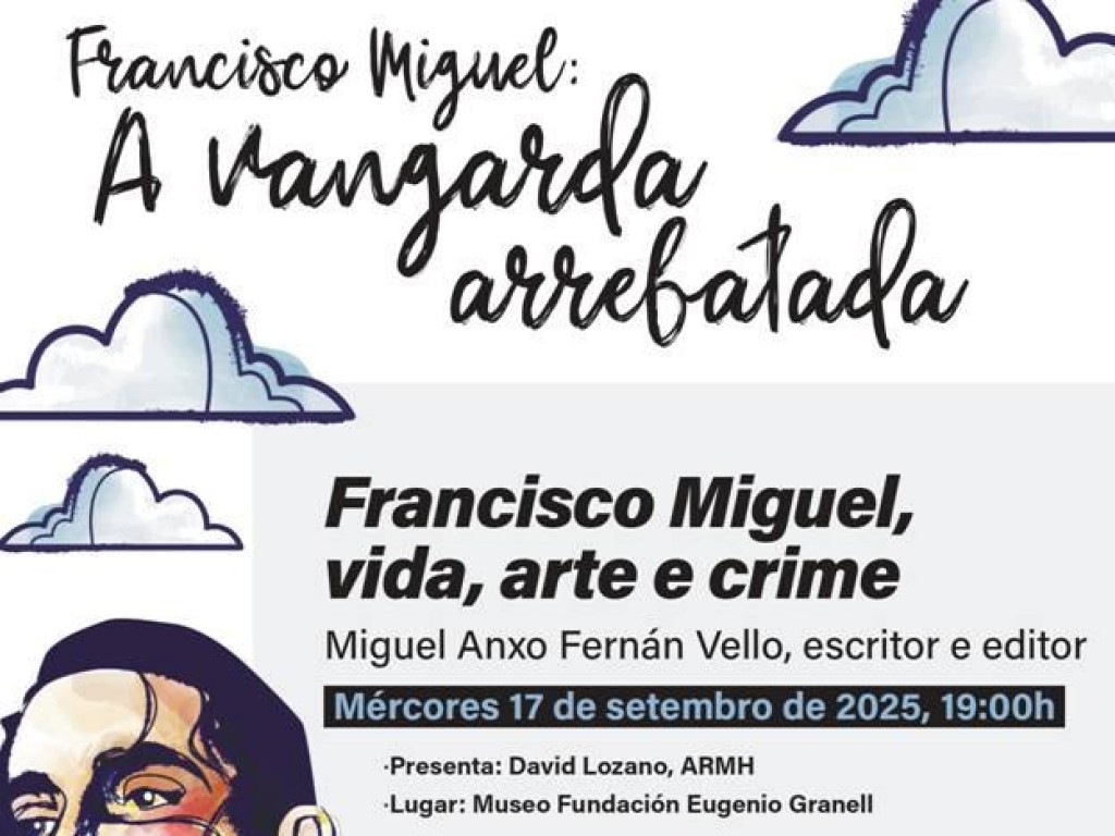 Como parte de las charlas divulgativas “La vanguardia arrebatada” sobre la vida y obra de Francisco Miguel y Syra Alonso, organizadas por la Diputación de A Coruña y la Asociación para la Recuperación de la Memoria Histórica (ARMH), se celebrará en Santiago una jornada en la Fundación Eugenio Granell. El evento tendrá lugar el miércoles 17 de septiembre a las 19:00 h y ofrecerá una visión profunda sobre la vida, el arte y los crímenes de Francisco Miguel.