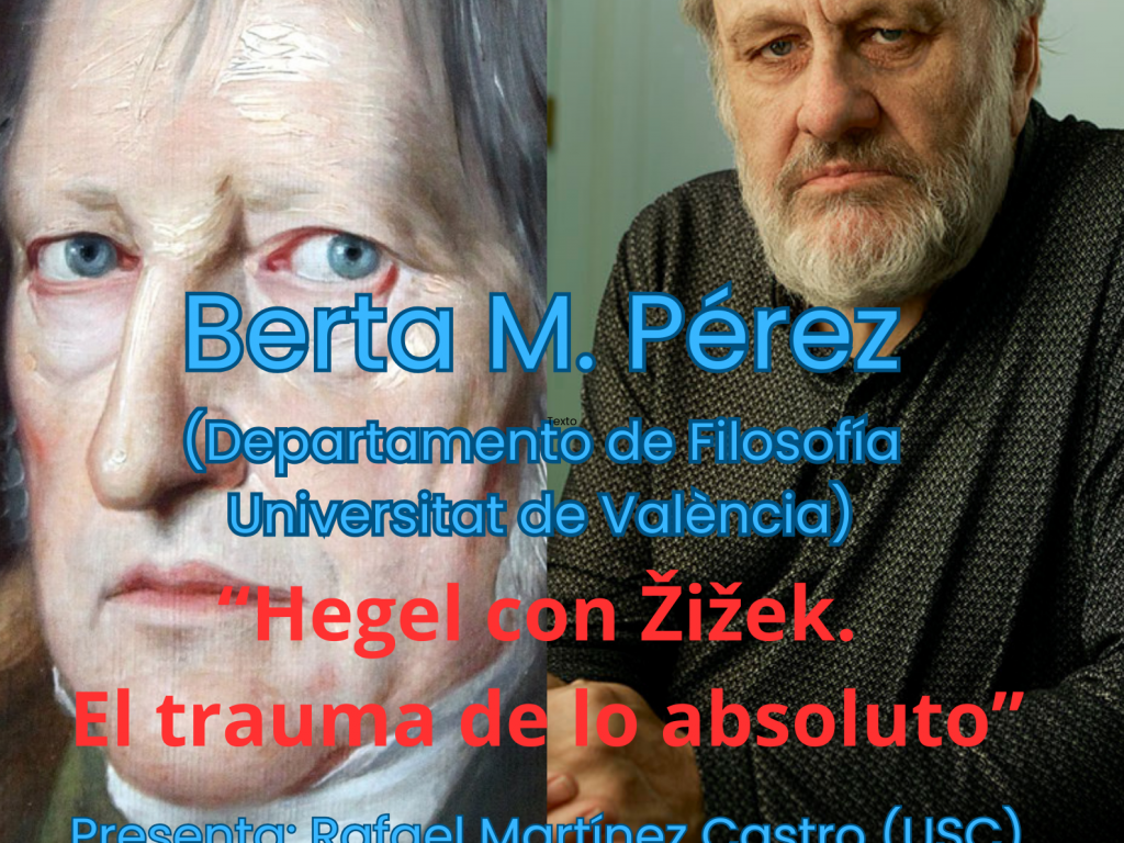 La conferencia “Hegel con Žižek: El trauma de lo absoluto”, dentro del ciclo de Conferencias Mazarelos de la Facultad de Filosofía, será impartida por Berta M. Pérez (Universitat de València). La sesión analiza la compleja relación entre sustancia y sujeto en el pensamiento de Hegel, según la interpretación de Žižek. Muestra cómo esta tensión intrínseca constituye un “bucle imposible”, revelando la naturaleza traumática de la verdad de lo real. Una oportunidad para acercarse a la filosofía hegeliana desde una perspectiva renovada y comprender por qué sigue siendo un referente clave del pensamiento contemporáneo.