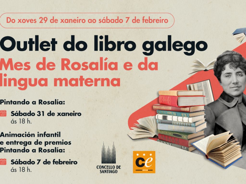 El I Outlet del Libro Gallego promueve la lectura en gallego en torno a dos fechas señaladas: el 21 de febrero, Día Internacional de la Lengua Materna, y el 23 de febrero, aniversario del nacimiento de Rosalía de Castro.