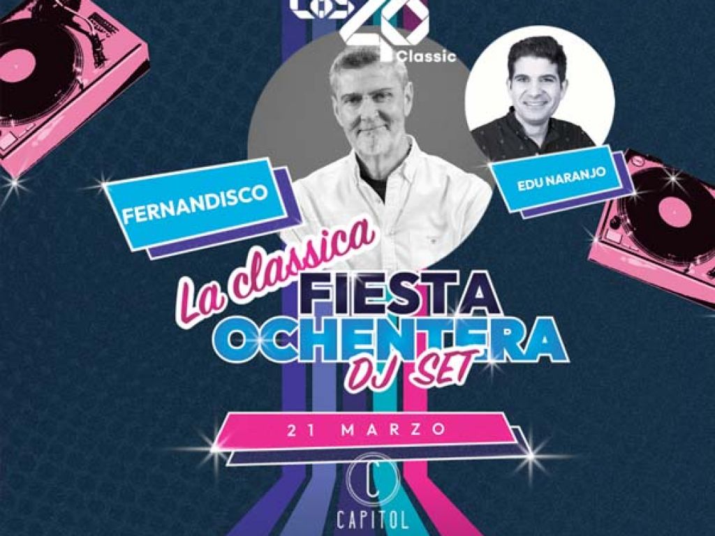 El próximo 21 de marzo, Fernandisco y Edu Naranjo llegan a Santiago de Compostela con una sesión especial que reunirá los grandes números uno de Los 40 Classic. Una cita para disfrutar de la mejor música de los años ochenta en formato DJ Set, bajo el nombre La Classica Fiesta Ochentera. Una ocasión ideal para bailar y revivir los clásicos de toda una época.