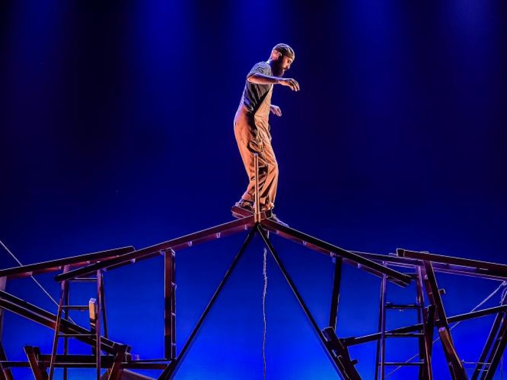 El malabarista construye mediante equilibrios de elementos de madera, buscando su estabilidad y creando así un lenguaje propio lleno de sorpresas. A través de diversas técnicas circenses, el espectáculo invita a reflexionar sobre nuestras raíces y los lugares que habitamos.