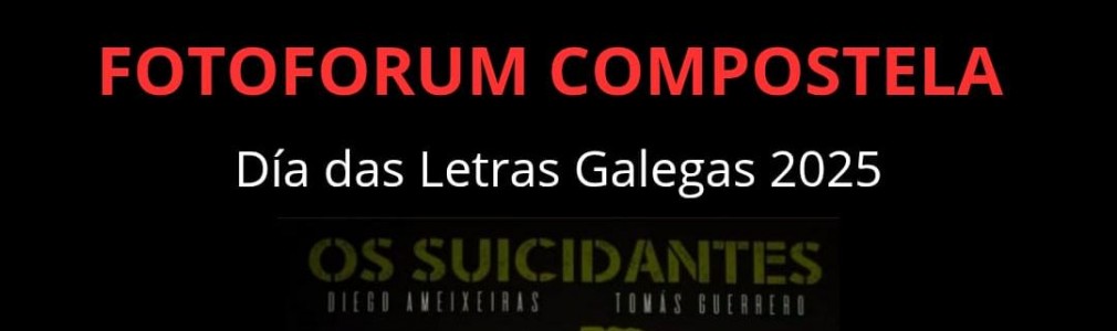 La Asociación Fotoforum Compostela, entidad con doce años de trayectoria que tiene entre sus objetivos la promoción y defensa de la lengua y la cultura gallegas a través de la fotografía, presenta, con motivo del Día de las Letras Gallegas 2025, un proyecto expositivo colectivo que toma como punto de partida la novela gráfica Os suicidantes, con guion de Diego Ameixeiras —autor residente en nuestra ciudad— e ilustraciones de Tomás Guerrero, publicada por Xerais en el año 2023. La obra propone un futuro distópico ambientado en Santiago de Compostela.