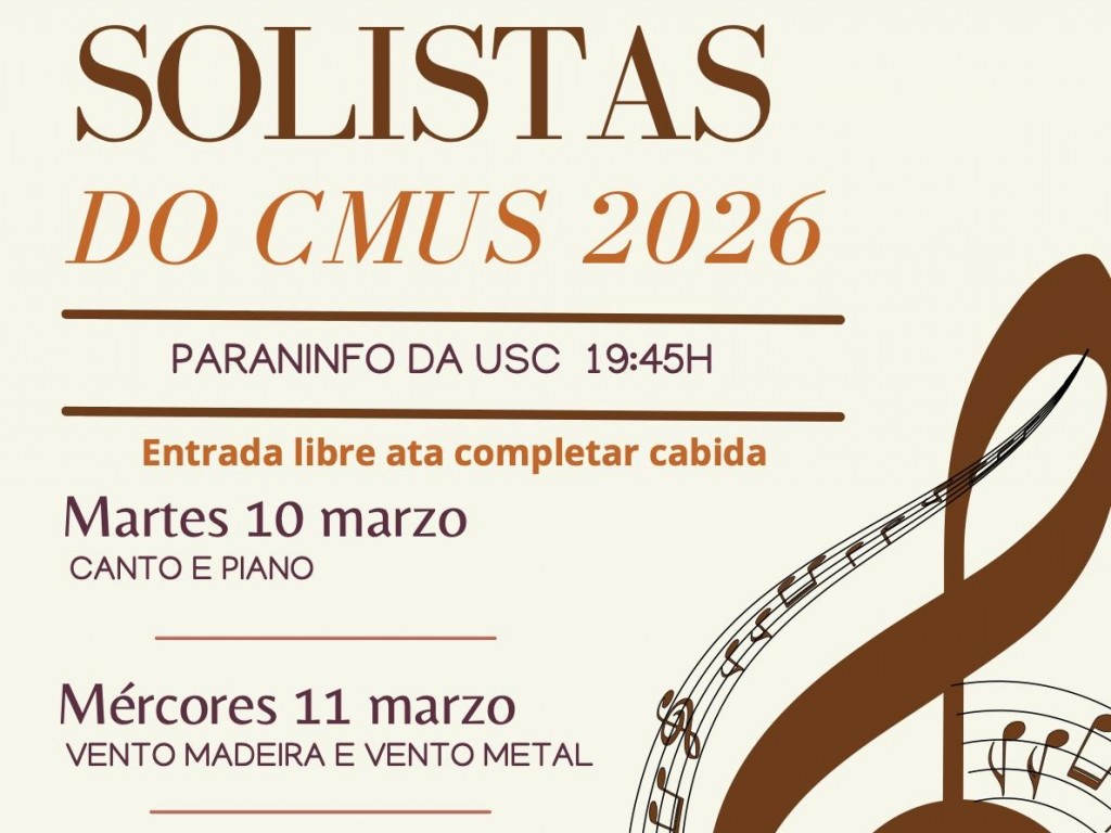 Solistas do CMUS 2026 trae al Paraninfo de la USC distintos conciertos en marzo y abril.