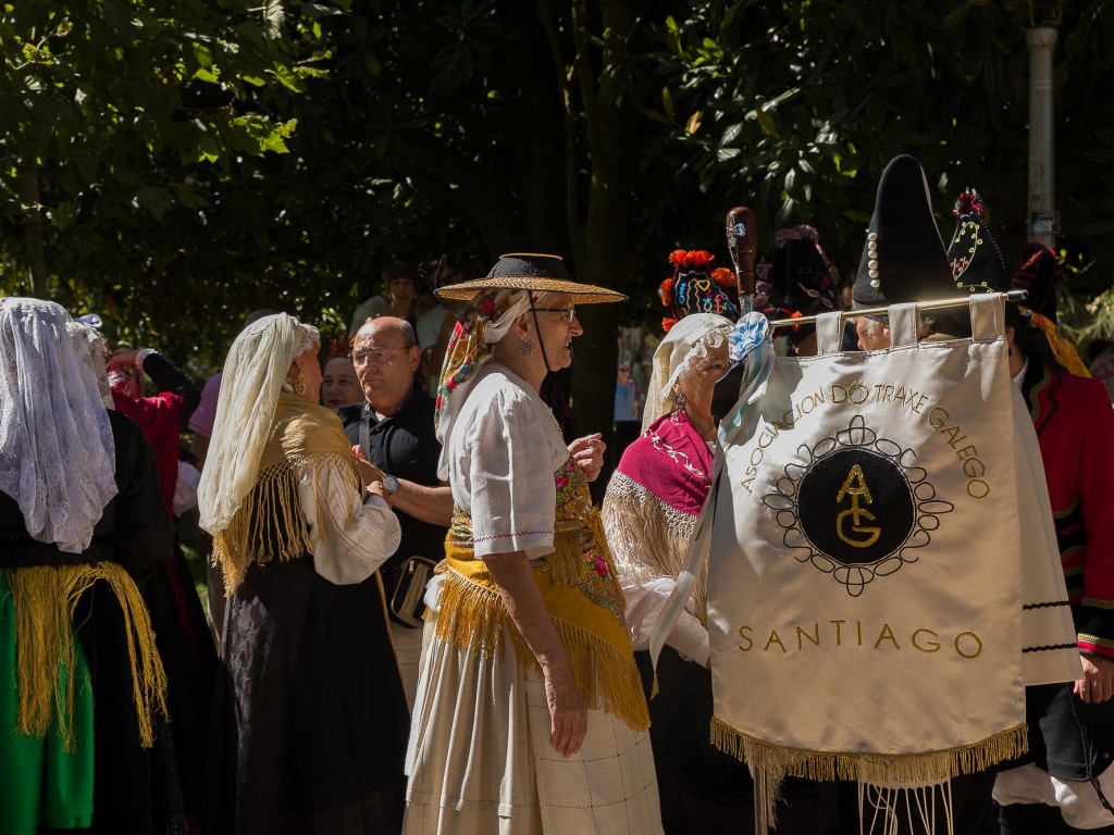 - “Picheleiras: el traje tradicional en la comarca de Santiago” – Andrés Collantes.Características y peculiaridades del traje tradicional popular en Compostela y su entorno. Los trajes de brillantes: bristol, oro, negro y claro de luna.