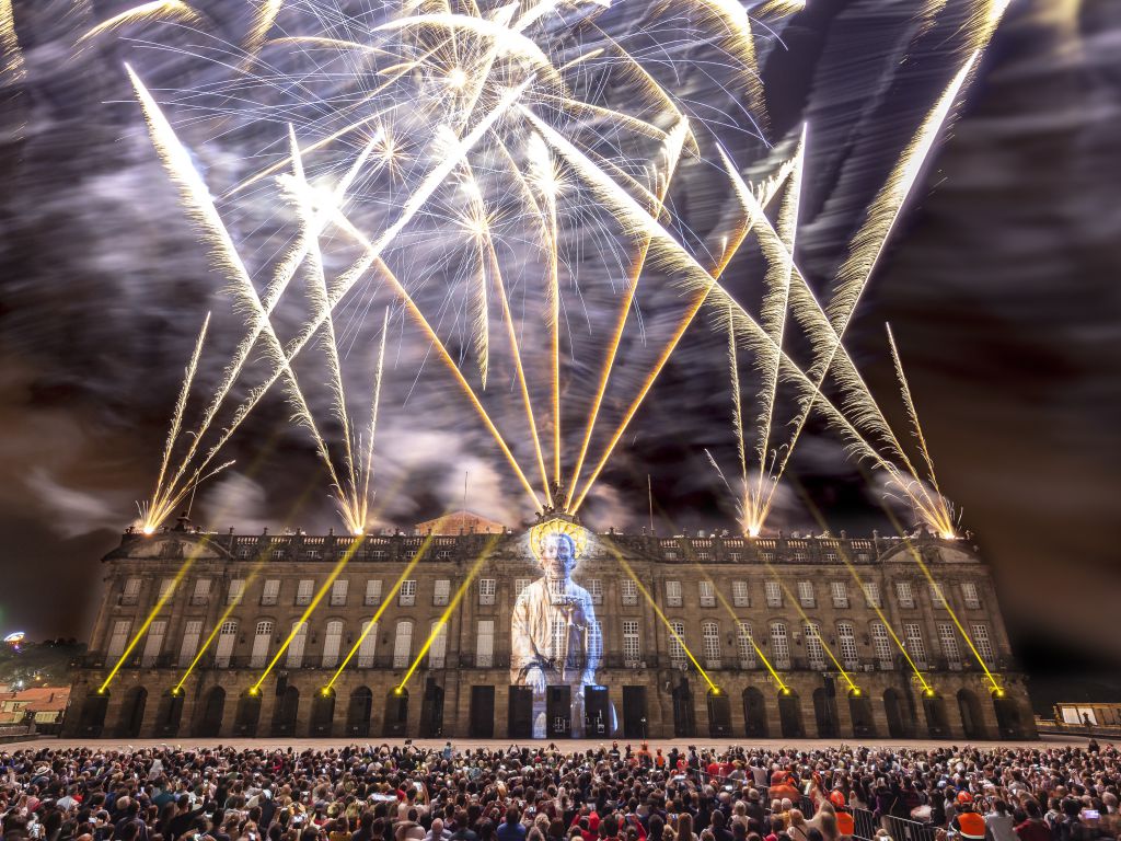 Dentro del programa de las fiestas do Apóstol, impresionante espectáculo de fuegos artificiais lanzados desde distintas ubicaciones de la ciudad.