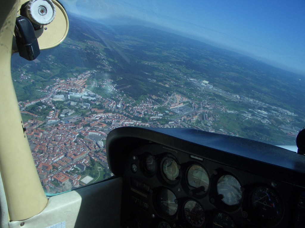 Aeropuerto de A Coruña, Islas Sisargas, Cabo Vilán, Finisterre, Negreira y casco urbano de Santiago, siguiendo por Ferrol para regresar al aeropuerto.