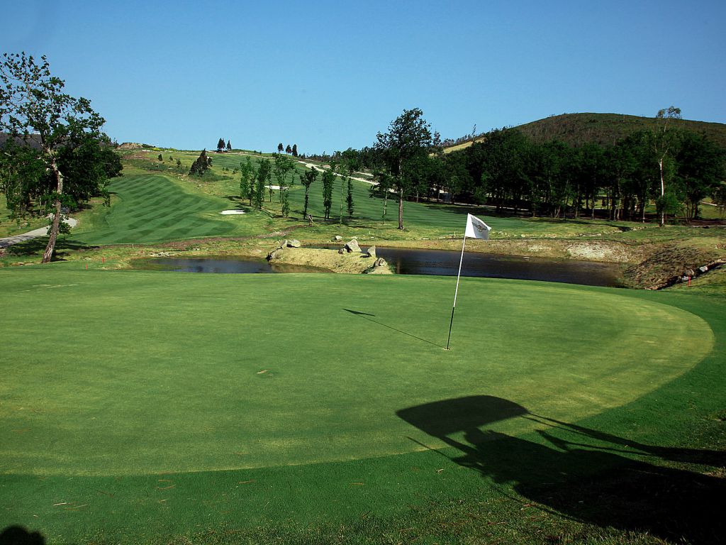 El campo de golf con 18 hoyos y par 71 sorprende por su exquisita adaptación al propio entorno. Su diseñador Alfonso Vidaor creó un interesante trazado respetando los antiguos muros de piedra de las “corredoiras” gallegas así como los robles, abedules y castaños autóctonos de la zona. Los lagos y juegos de agua centrales sirven como punto neurálgico del recorrido, más indicado para jugadores técnicos que para “pegadores”, así como para enriquecer las espectaculares vistas que ofrecen los amplios porches de la casa club.