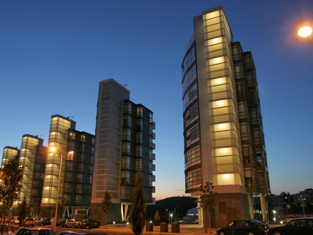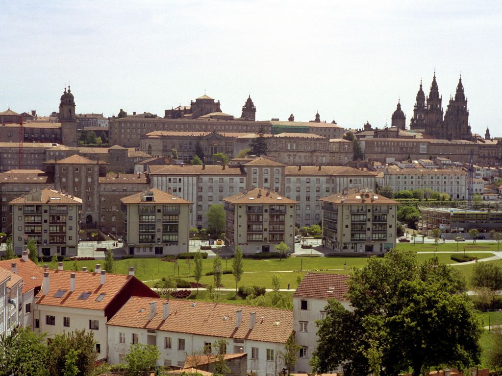 Por su parte, la entrada este de la ciudad ofrece escenarios de corte más metropolitano. San Lázaro aporta una estética marcadamente institucional y ordenada, dominada por edificios administrativos, hoteles y amplios bulevares. Muy cerca, zonas elevadas como As Cancelas combinan el dinamismo de las grandes superficies comerciales con bloques residenciales que dominan el perfil de Compostela.