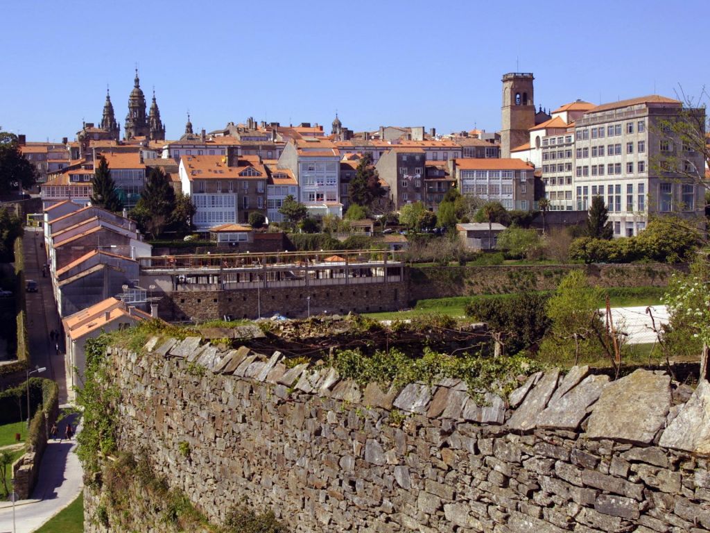 Belvís, barrio situado al este de la ciudad histórica, ofrece varios puntos de mira diferentes. Desde la cima de la cuesta de As Trompas, de la catedral sólo se ven sobresalir las torres, que asoman por encima de los tejados del casco histórico. Un poco más allá, en la zona recientemente remozada del parque de Belvís, hay un belvedere desde el que se tiene una perspectiva más moderna de la ciudad, incluida toda su expansión hacia el sureste. Es una visión más cinematográfica, sobre todo por las noches, cuando las luces de los bloques de edificios del Ensanche sugieren historias de gente.