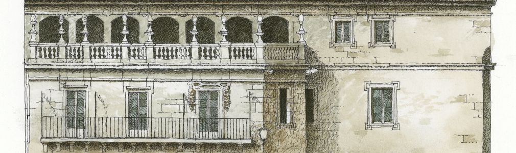 Obra de Domingo de Andrade, fue objeto de reformas en el siglo XX, en el que se le añadió la balaustrada superior y un piso más. Destaca la decoración a base de racimos que enmarcan las puertas inferior y superior del lado derecho, así como las ménsulas labradas en la parte inferior del balcón y la monumental chimenea.