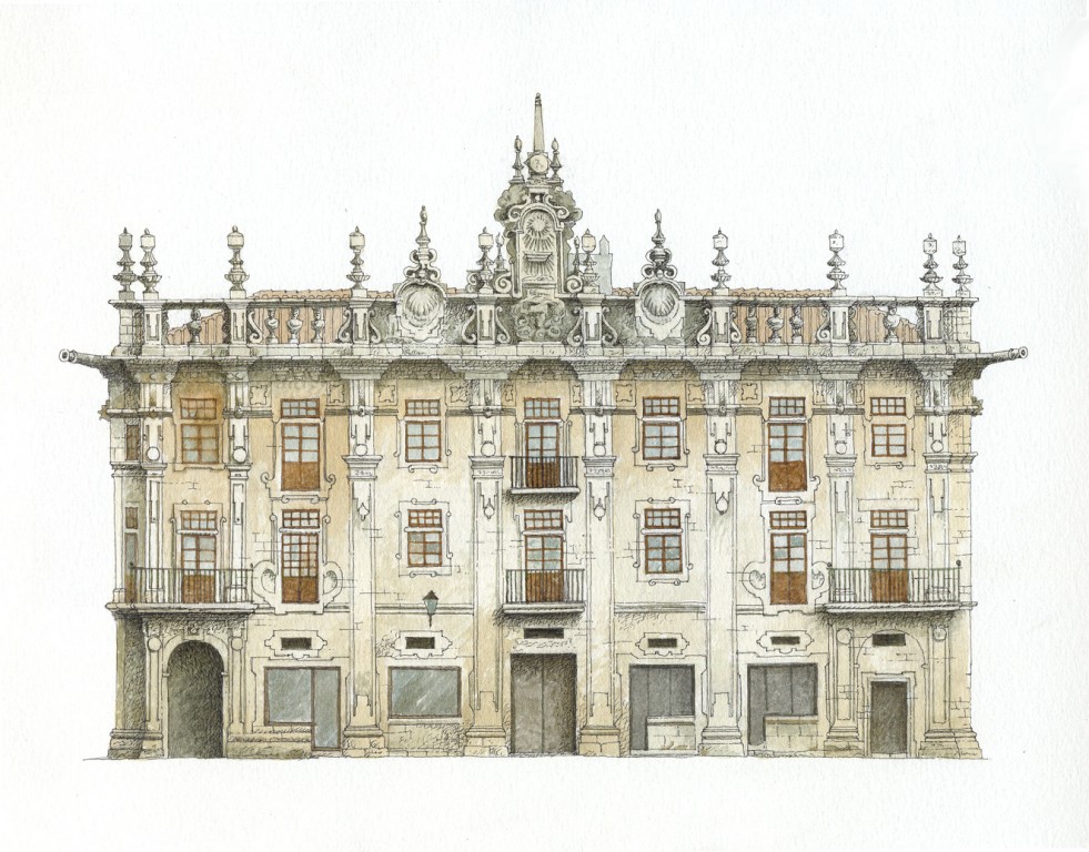 Esta fachada ornamental de poco más de tres metros de fondo y levantada frente a la Puerta de Platerías cierra la hermosa plaza en la que se asienta. Fue construida en 1758 por el arquitecto Clemente Fernández Sarela con una función puramente teatral: la de cerrar la plaza. Está considerada como una de las intervenciones de escenografía barroca gallega más importantes y conocidas.