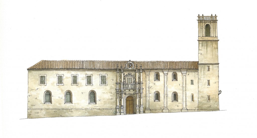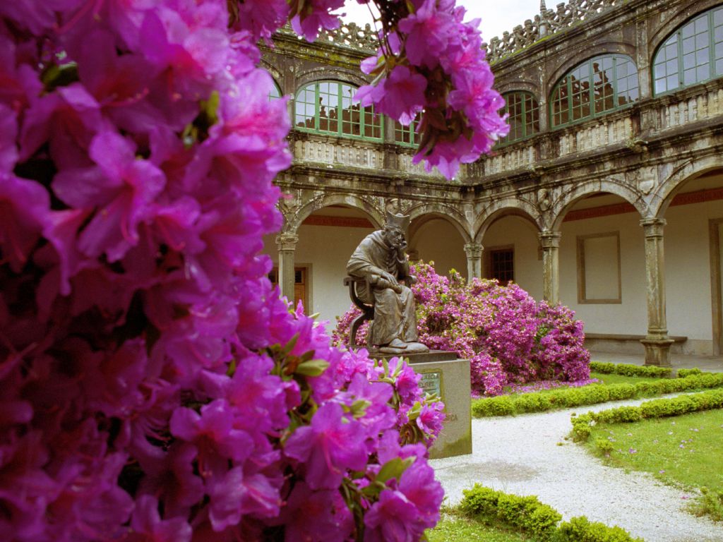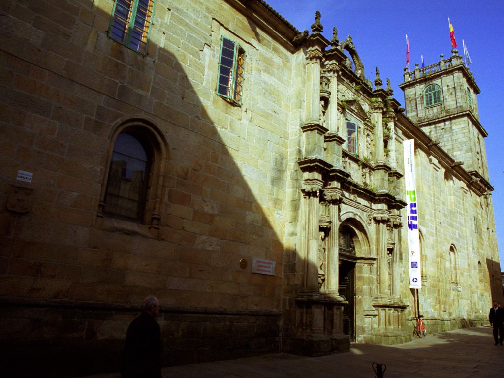 Este colegio fue mandado construir por el arzobispo Alonso de Fonseca adaptando la casa donde él había nacido y que pertenecía a su influyente familia, para ejercer la función pedagógica. Comenzó a funcionar en el año 1544 y en él tendrá sede la Universidad Compostelana creada con el patrocinio de su familia a principios de siglo. La fachada es de estilo renacentista. Consta de dos cuerpos con estatuas góticas en los intercolumnios y en los nichos del friso. En el centro de la fachada, en el medio del friso que separa los dos cuerpos con los que cuenta el edificio, destaca el escudo con las cinco estrellas de los Fonseca, rodeado de las imágenes que representan a los Doctores de la Iglesia. En el interior podemos visitar el patio circundado por una leyenda epigráfica, obra de Gil de Hontañón. A la derecha de la puerta está la entrada a la capilla gótica y a la izquierda la entrada al Salón Artesonado. En la actualidad acoge la Biblioteca Xeral da Universidade.