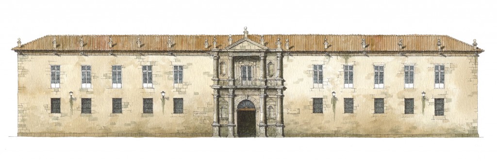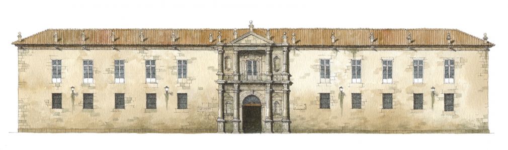 Es actual sede del Instituto de Bachillerato 'Rosalía de Castro', aunque desde su fundación ha albergado numerosas instituciones públicas y privadas tales como la Real Sociedad Económica de Amigos del País, el Museo Arqueológico, la facultad de Derecho, etc. Tiene planta cuadrangular, en sillería de granito, con dos alturas y dispuesta en torno a un patio central clásico, acorde con su destino universitario. En la fachada hay elementos decorativos innovadores en el barroco gallego de inicios del siglo XVII.