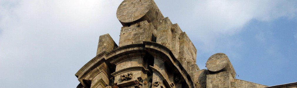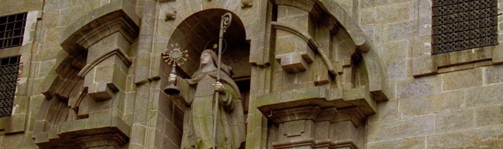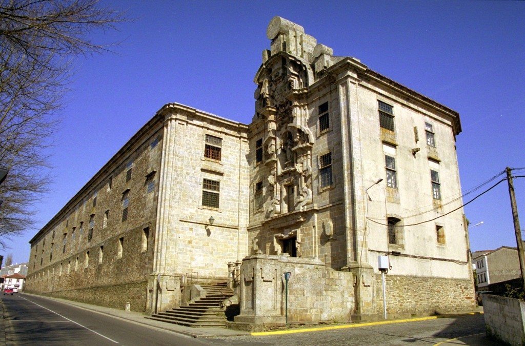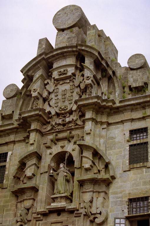 Cuenta con una peculiar fachada-telón, claro ejemplo del barroco compostelano, trazada por Simón Rodríguez en el siglo XVIII. Al fondo de un pequeño jardín, se esconde la verdadera fachada, más sencilla, que da acceso al templo.