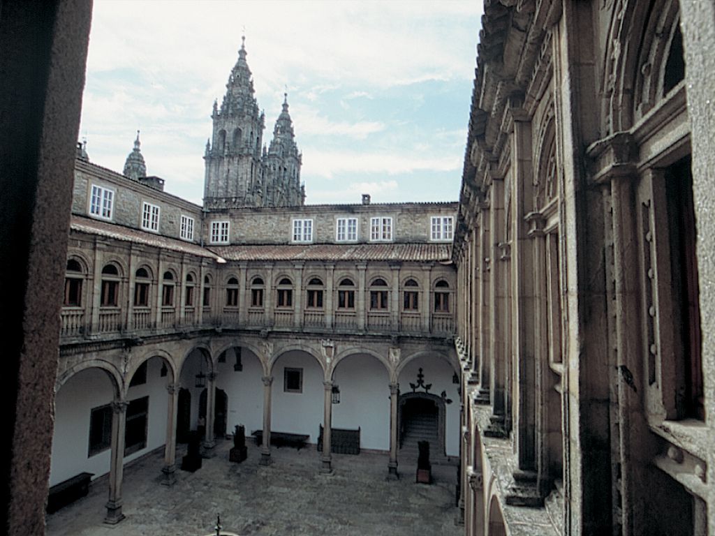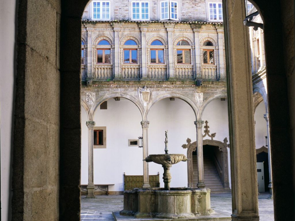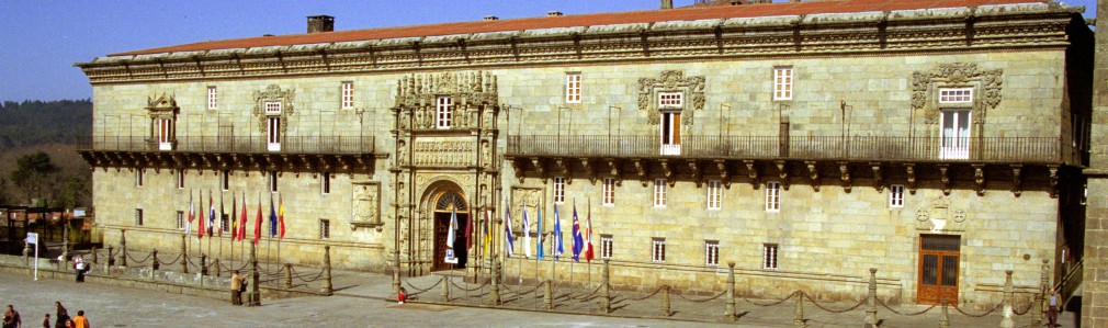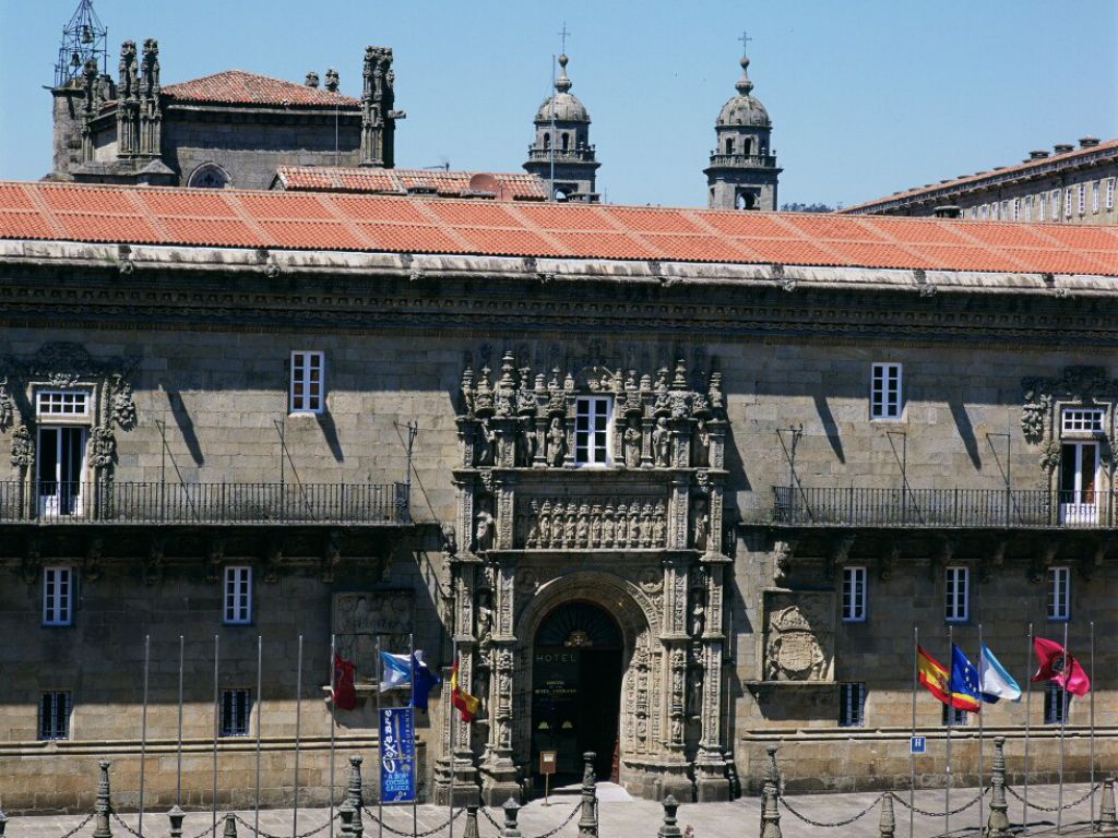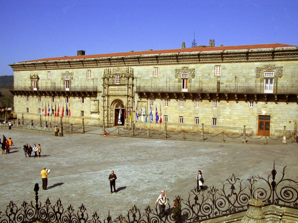 El actual edificio fue mandado construir en 1501 por los Reyes Católicos para atender a los enfermos y peregrinos del divino Xacobe, según se puede leer en la inscripción latina que recorre el friso superior de la portada. Su construcción, no obstante, se decidió ya en 1492 coincidiendo con el descubrimiento de América.