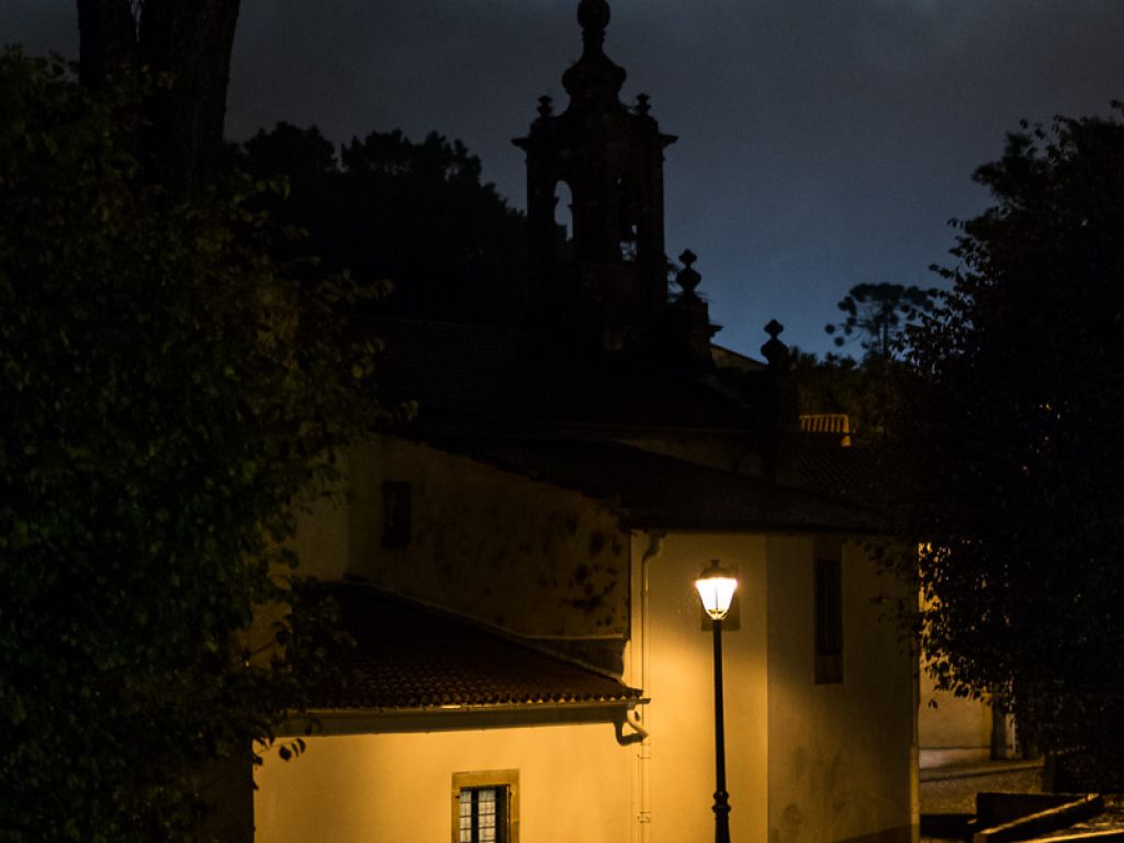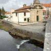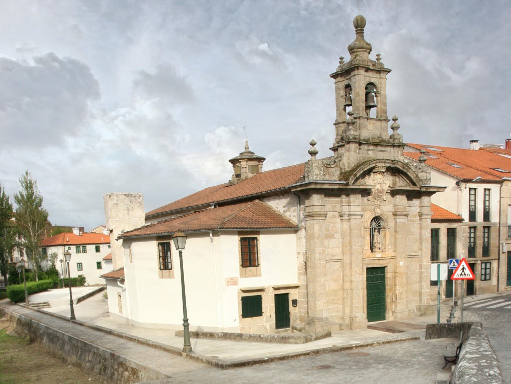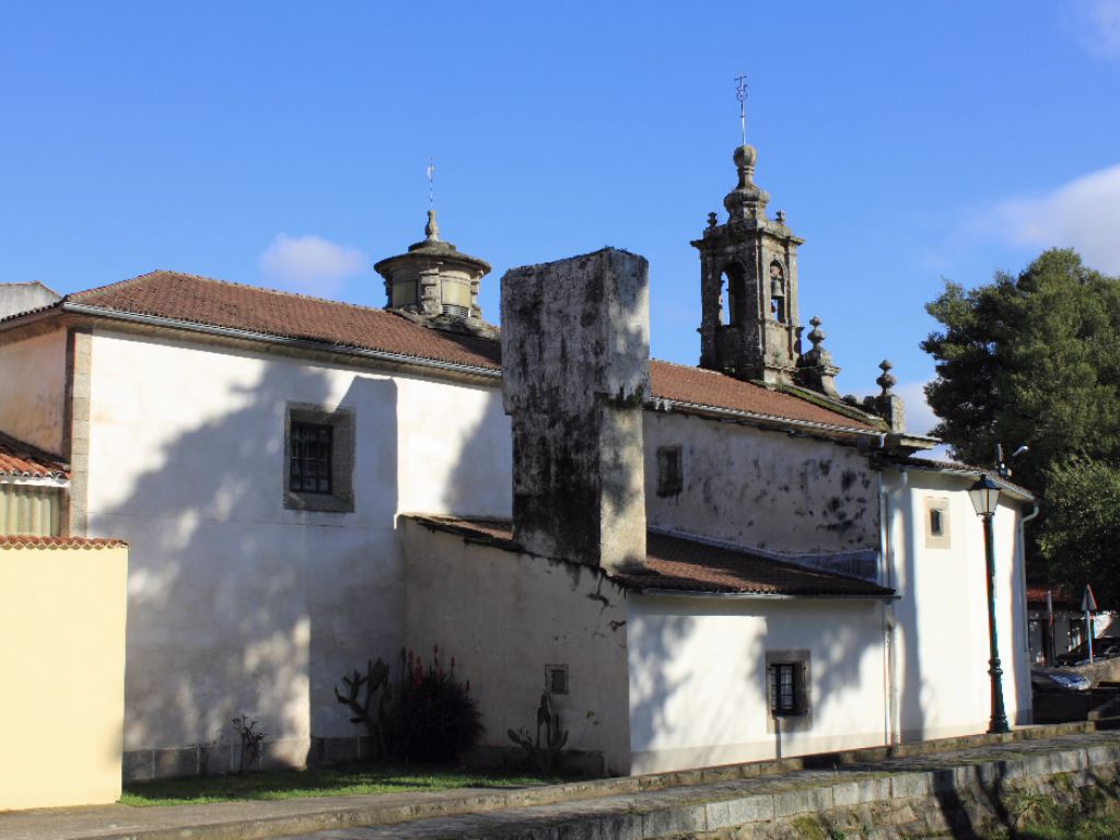 Este templo barroco clasicista consta de una única nave de planta rectangular, cubierta a dos aguas y linterna circular en el centro. Se levantó entre los años 1760 y 1773 sobre una pequeña capilla anterior. Los planos originales eran del arquitecto Lucas Ferro Caveiro, aunque durante la construcción se perdió la huella del barroco compostelano, quedando una obra de carácter muy rural. En 1867 Baltasar Ferreiro añadió un nuevo presbiterio, con lo que el presbiterio original se convirtió en crucero.